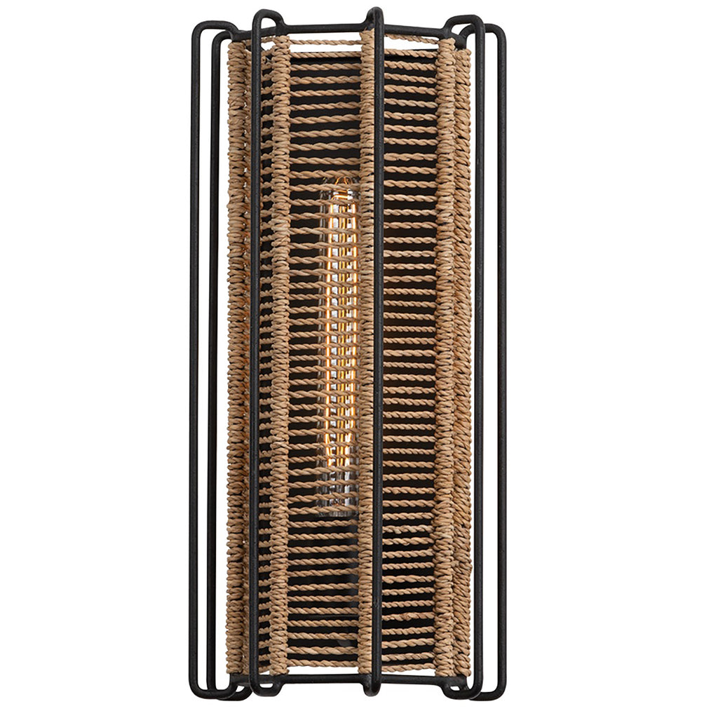A textured black framework is wrapped in natural jute on the interior to create a modern industrial style that looks rustic yet elevated. The metal frame is vertical and the rope detail runs horizontal forming a dynamic silhouette that feels fresh. The lantern is available in three different sizes to suit any space.