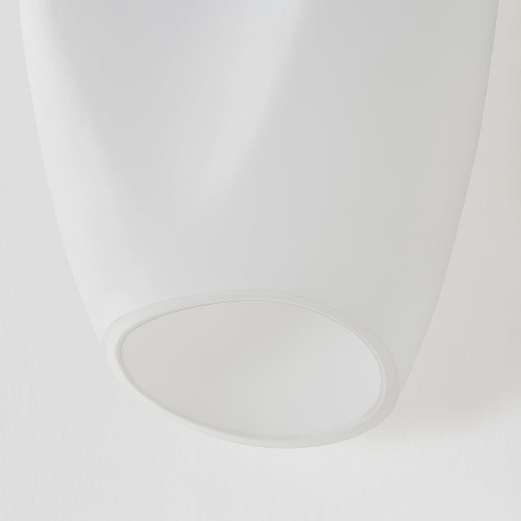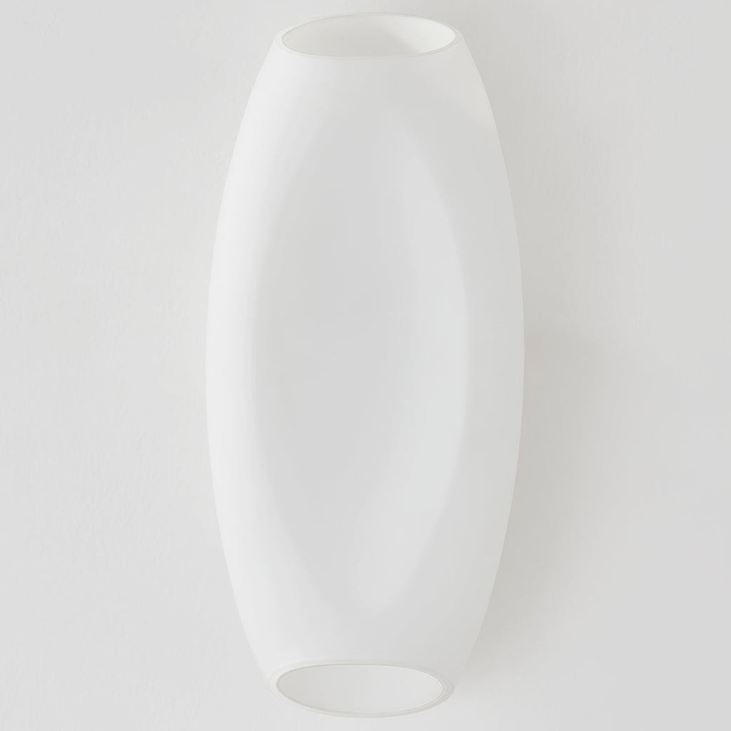 This artistic wall sconce features a thick curved piece of opal matte glass open at both ends to cast uplight and downlight and a soft indentation at the center that creates a soft, unique glow within the shade itself. Minimal Patina Brass details at the backplate keep the focus on the beauty of the glass.