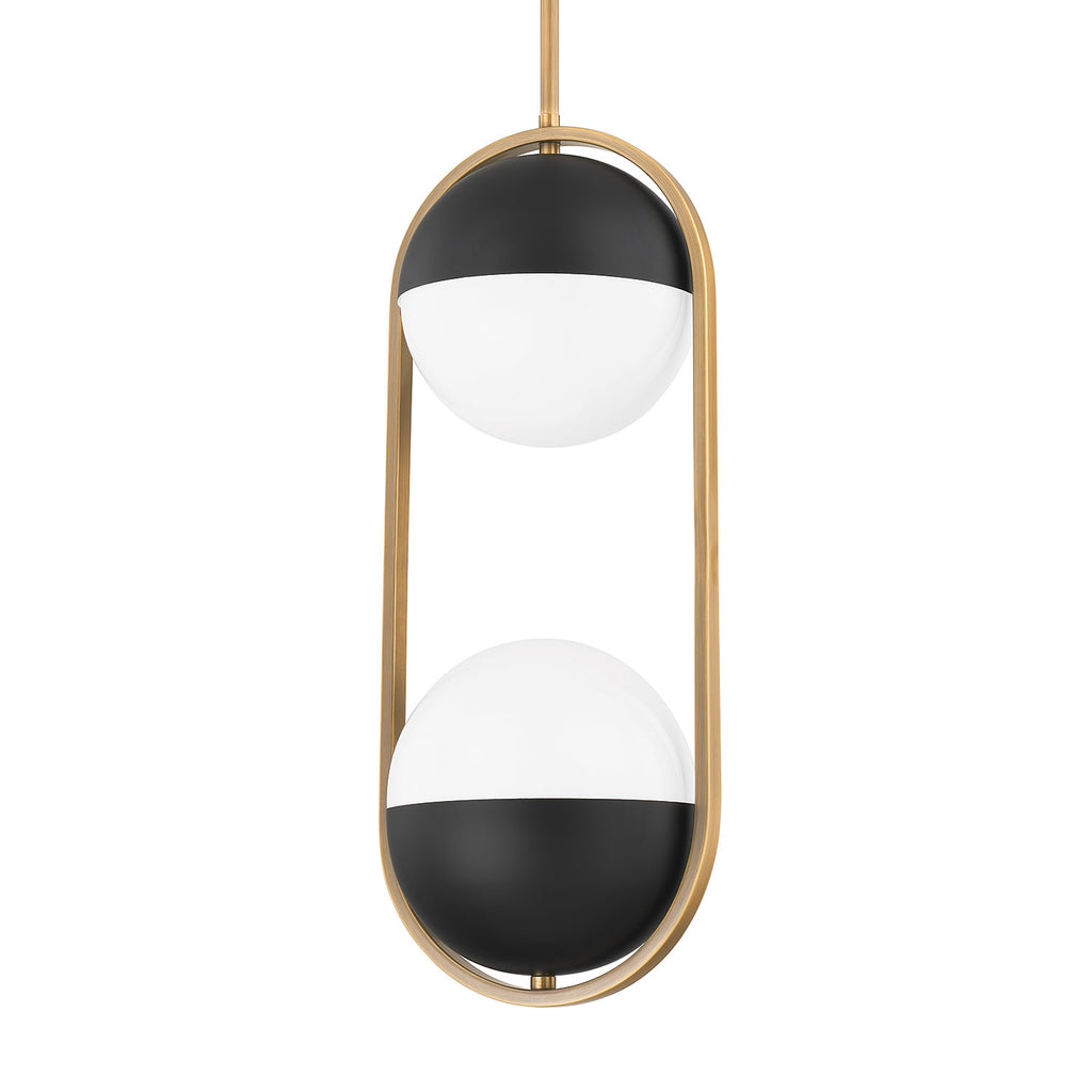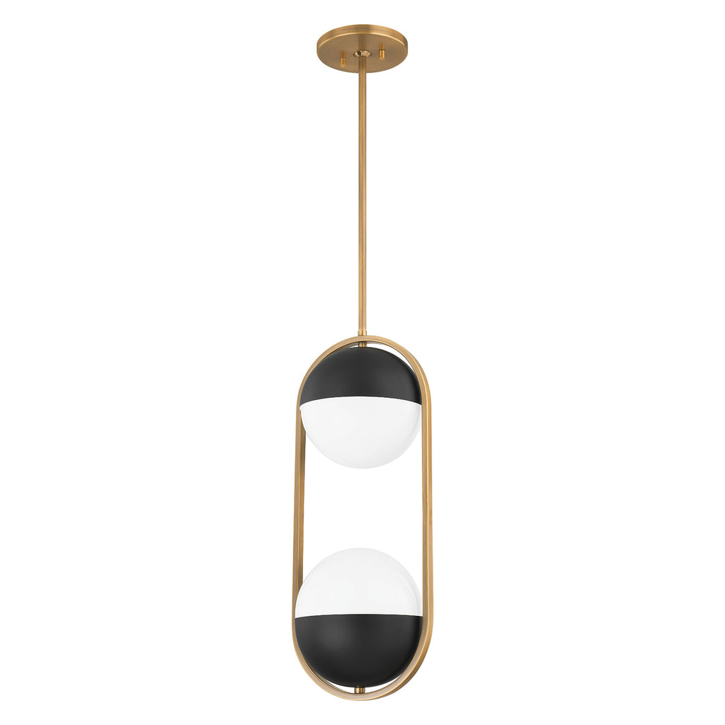 Casual, sophisticated, and little bit curious, express yourself with eclectic, artisan-made lighting by Troy. The Troy Willard pendant features a capped opal glossy globes are suspended within elongated metallic bands for a look that is balanced and beautiful. The Patina Brass and Soft Black finishes work together to give the fixture an earthy, moody vibe. The clean lines and unique design bring a glamorous modern styling to any ceiling.