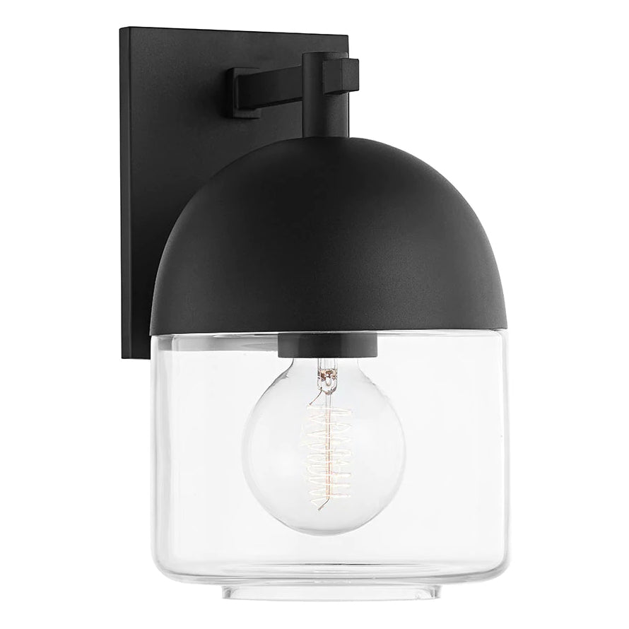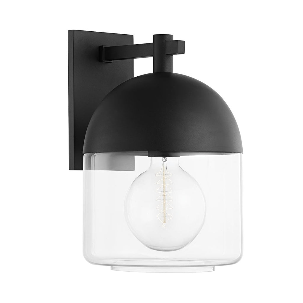Casual, sophisticated, and little bit curious, express yourself with eclectic, artisan-made lighting by Troy. Let's take this outside, shall we? Troy lighting offers versatile outdoor lighting for doors, patios, or any space that needs extra illumination. The great outdoors gets a mid-century companion in the Troy Zephyr exterior wall sconce's cool form. The dome shade features a dynamic combo of textured black and clear glass, leading to a tapered opening for easy maintenance. We recommend adding a globe bulb to fully embrace the MCM look. Available as a pendant, and wall sconce in two sizes.