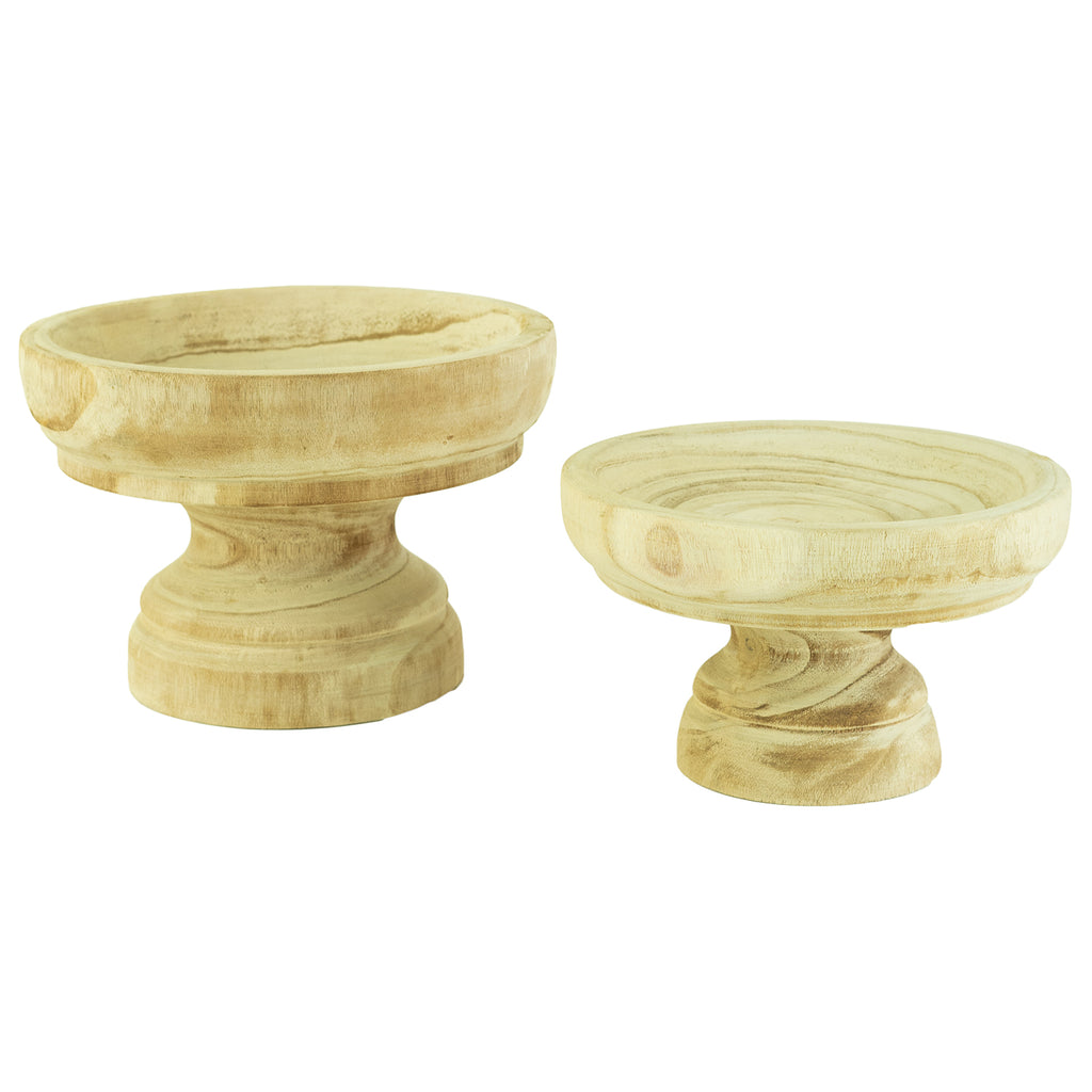This Set of 2 turned wooden compotes looks great on any counter! Add fruit for a pop of color in the kitchen.