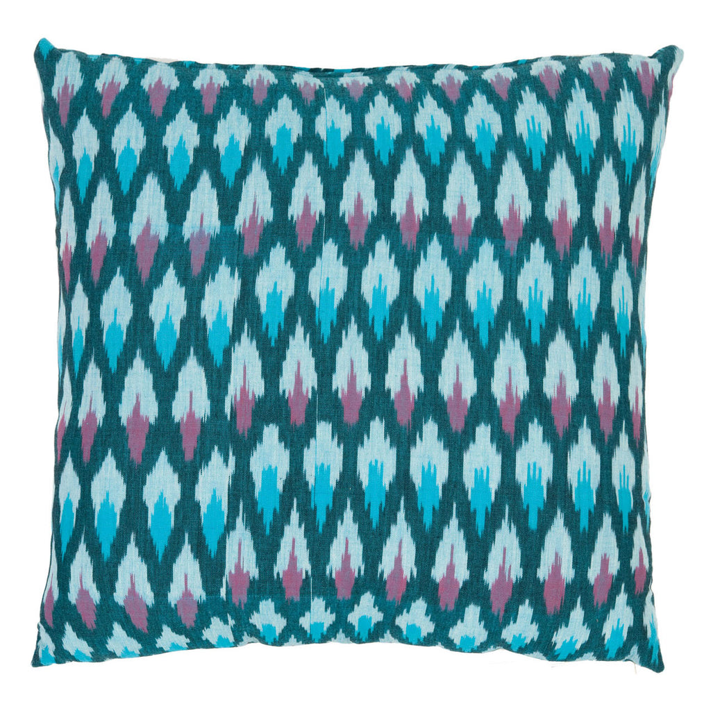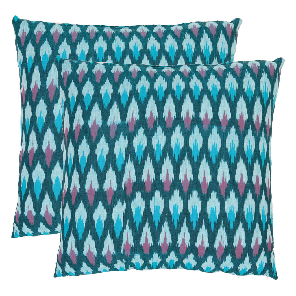 Stylized Persian paisleys form alternating teal and lavender stripes in this exquisite ikat motif printed on cotton for the purest color clarity and pattern detail. Sold as set of two.