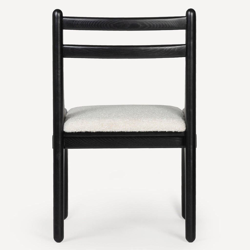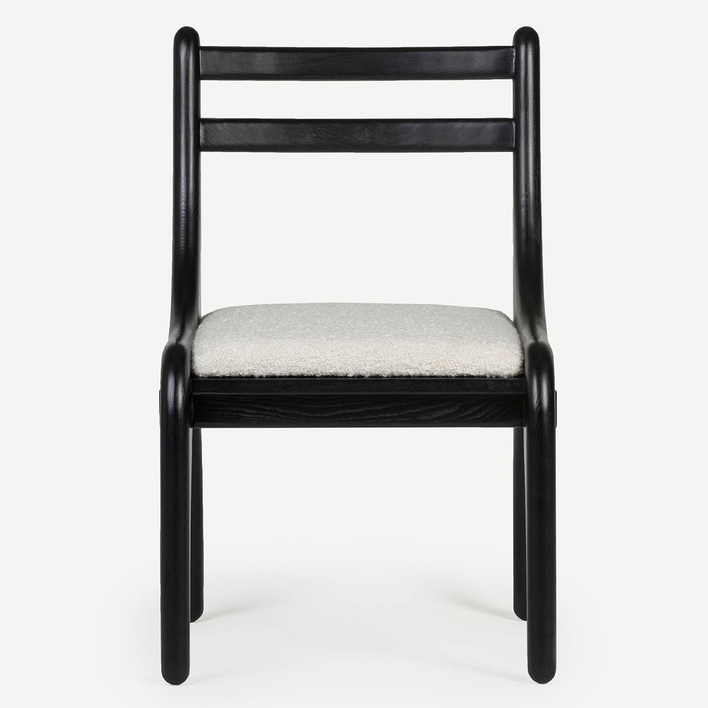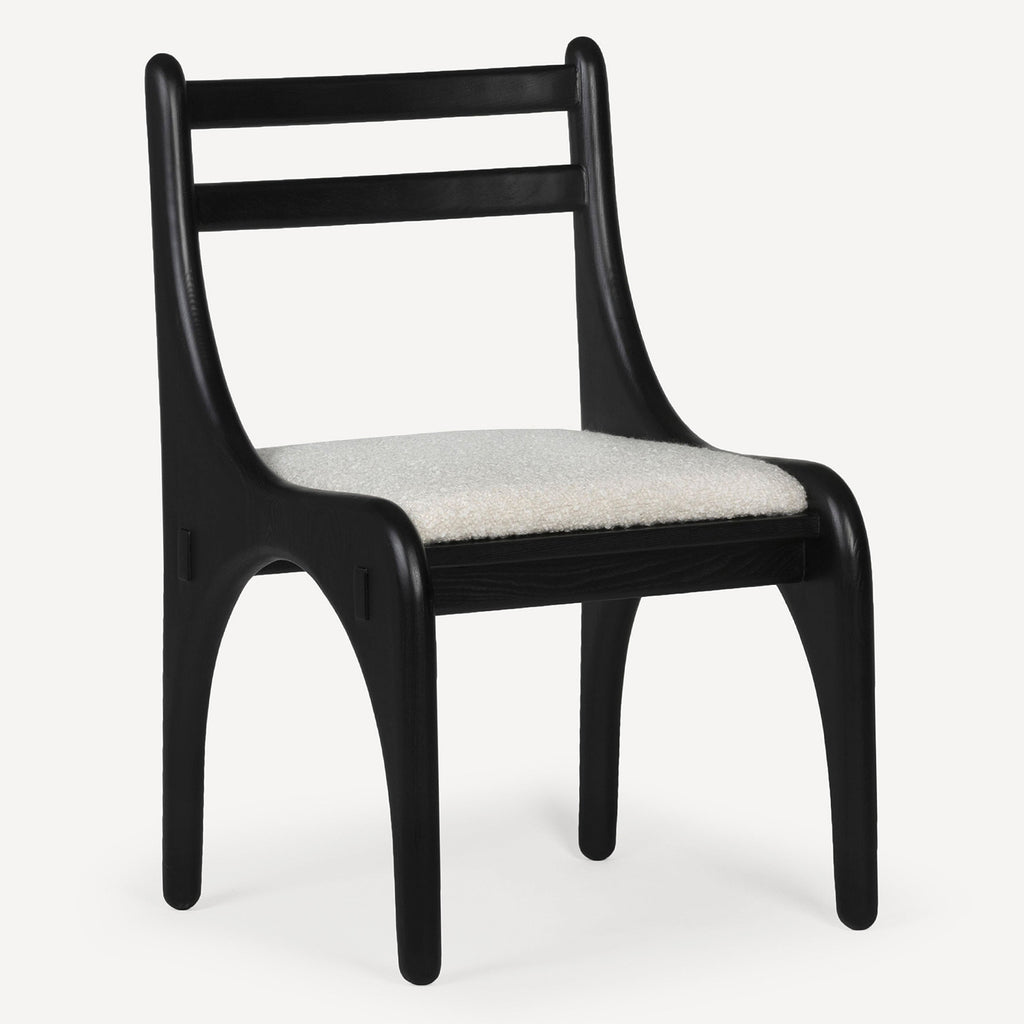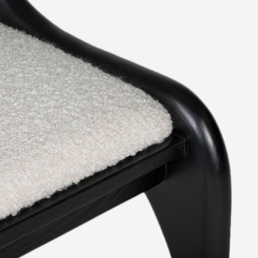 Inspired by arches from architectural landmarks, the Luna chair features dramatic geometry as both its structure and aesthetic. The FSC Certified, solid Oak frame supports a soft, boucle upholstered seat cushion.