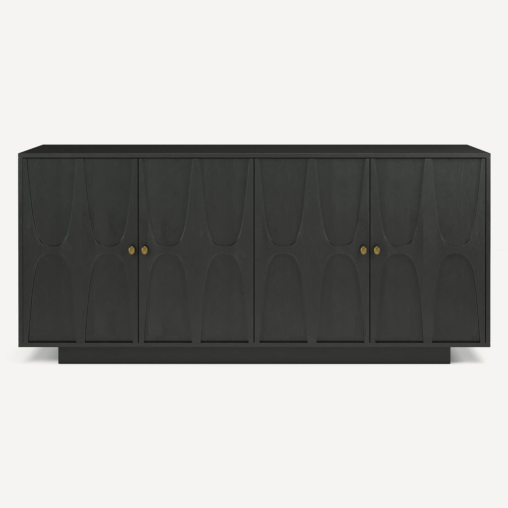 The Roma sideboard transcends styles, complementing both traditional and modern spaces. Inspired by the shape of Roman aqueducts, the solid FSC Certified Oak case and sculptural doors conceal 4 adjustable shelves.
