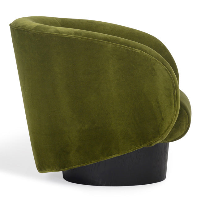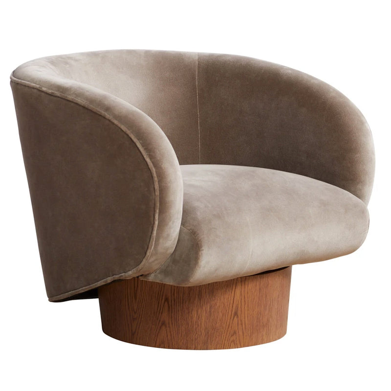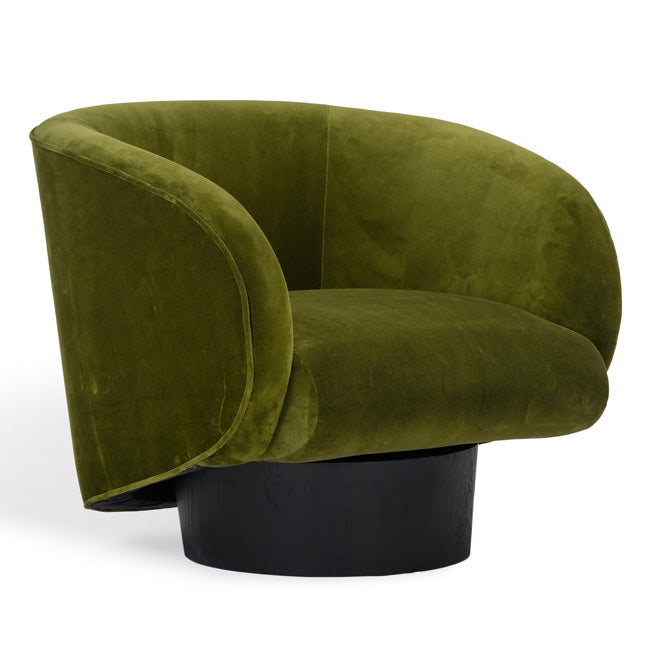Distinct in style and always experimenting, Union Home Furniture adds expression to every room in the home with artfully crafted modern pieces. The modern Union Home Rotunda chair is an addition to any living space. The handcrafted curves to the seat in an array of different colored cotton velvets on a round oak base add an element of eclectic. Sit back and enjoy the swivel.
