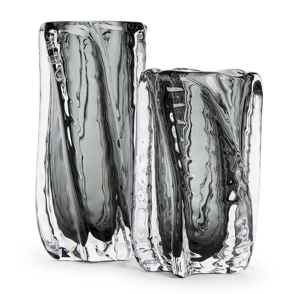 Elevate your space with the Vendome set of 2 art glass vases in an exquisite smoke and clear blend. Hand-blown to perfection, these vases stand at 8 1/4" and 10" inches tall, adding a touch of sophistication to any room. The elegant design allows for versatile styling, perfect for showcasing fresh blooms or as standalone decorative pieces.