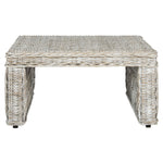 Elegant Parsons-style lines meet airy coastal-chic woven rattan in this go-with-anything transitional side table. Crafted of white washed kubu rattan and mahogany, master weavers use the open cross-cross motif to soften the streamlined silhouette.