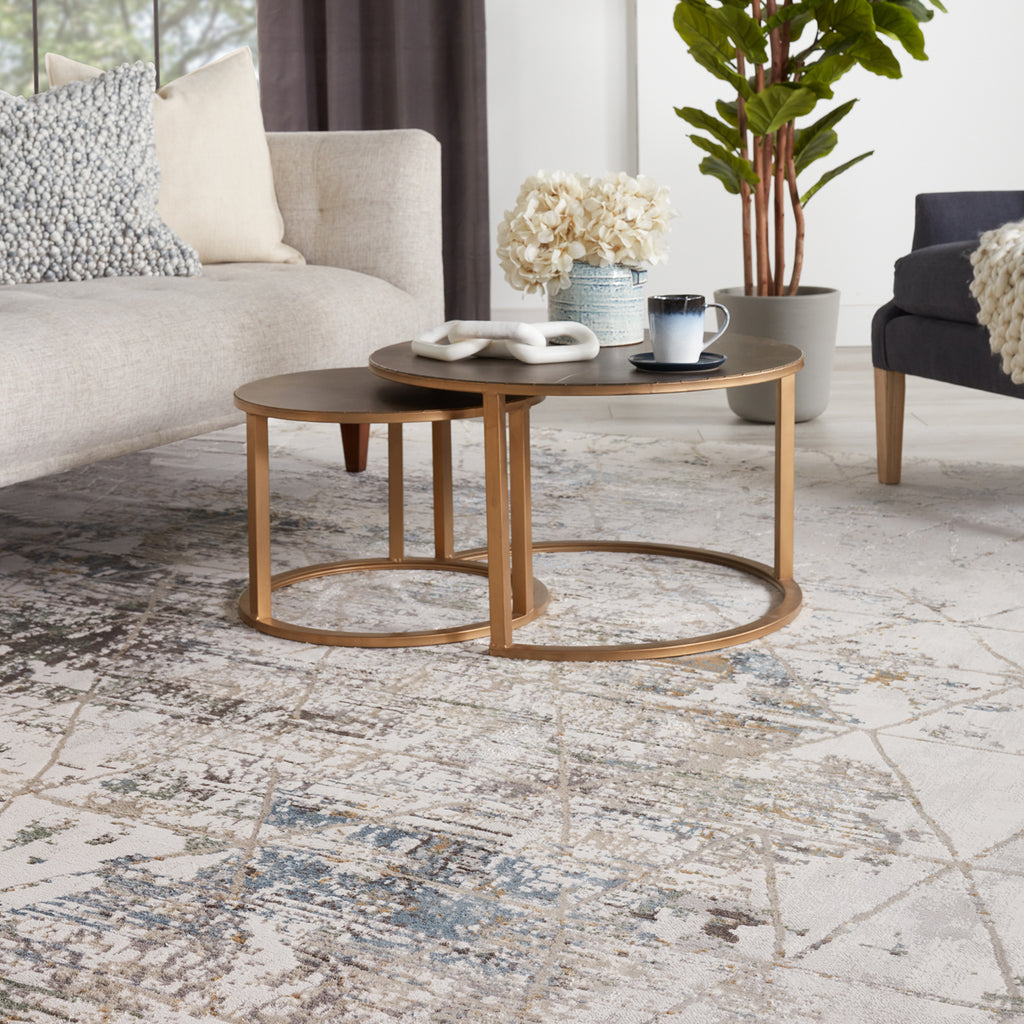 The glamorous yet versatile style of the Vibe by Jaipur Living Melo collection offers a chic, contemporary edge to any home. The Arya rug boasts a distressed Moroccan trellis motif in tones of ivory, gray, green, gold, and light blue. This power-loomed collection features a stunning lustrous sheen and texture-rich, varied pile height for added dimension and depth.