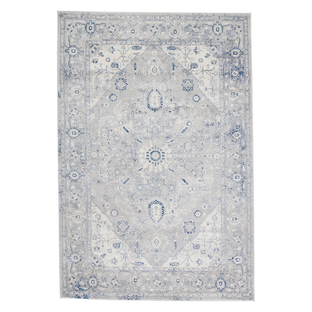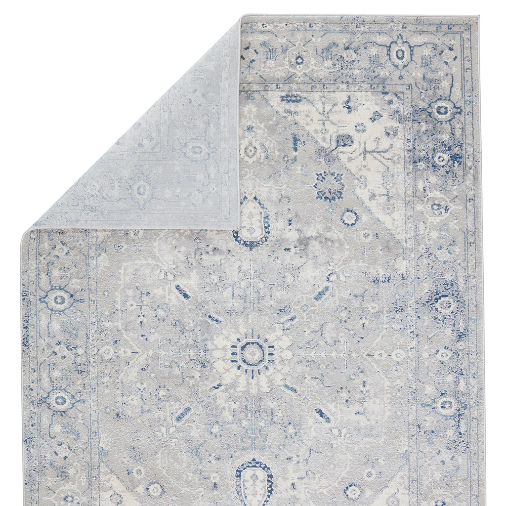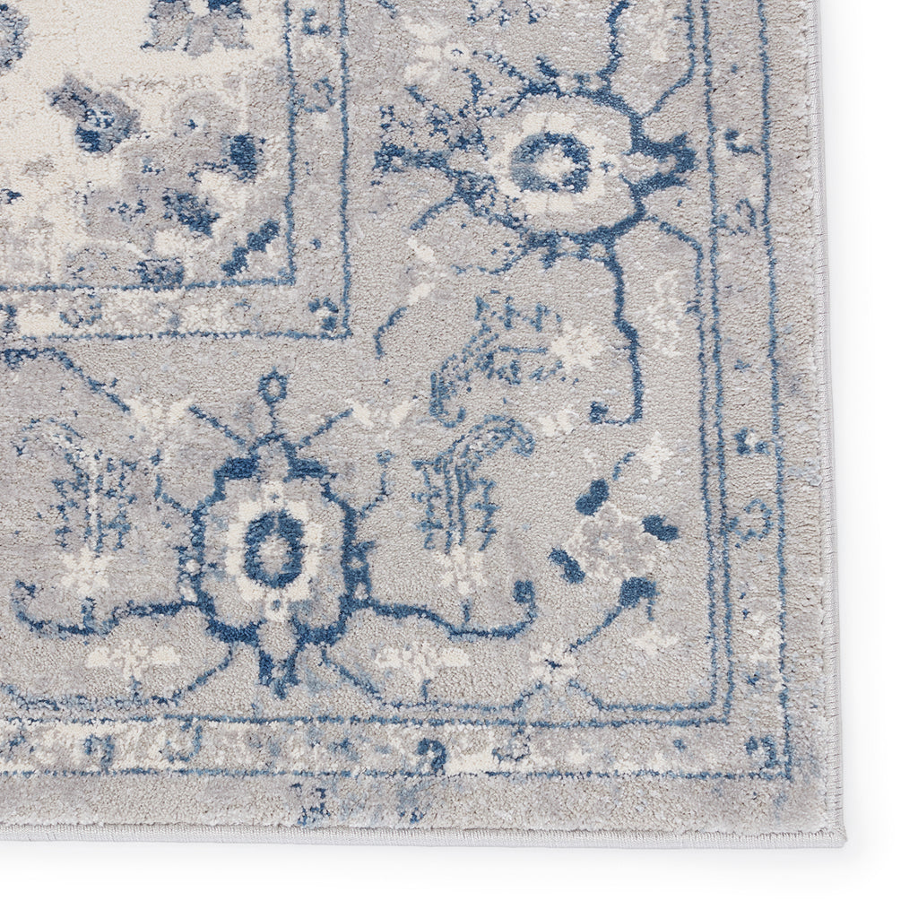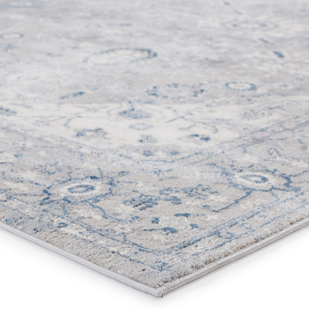 Inspired by both classic motifs and contemporary art, the Solace collection features transitional designs in soft, calming colorways. The Dianella area rug showcases a center medallion with elegant floral details in serene, relaxed hues of gray, ivory, and light blue. Made to withstand heavy foot traffic and lived-in spaces, this power-loomed polypropylene rug boasts texture-rich high-low pile.