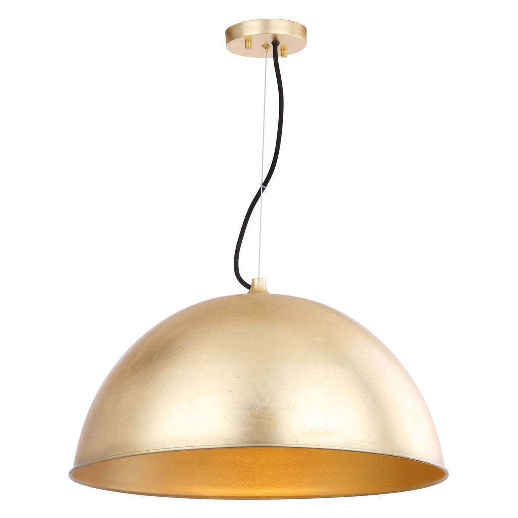 A radiant source of illumination, the Vicco dome pendant is a classic. Designed with elegant simplicity, its gentle curves are finished in brilliant gold leaf. Its decadent industrial luxe style is ideal for the living room, dining room or hall.