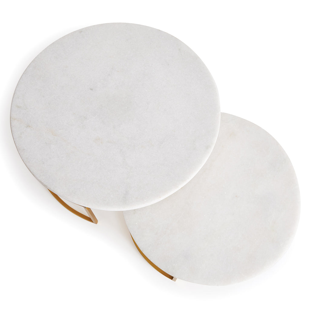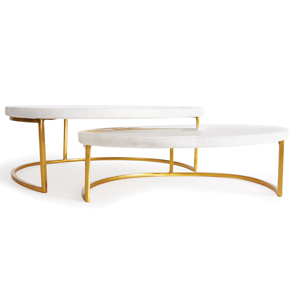 The Vienna Serving Stands, Set Of 2 is a decorative home accent designed to elevate your space. Crafted from stone/stainless steel, finished in gold,white, it brings texture, warmth, and timeless style to any room. In a classic combination of marble & brass, these serving stands are an elevated way to serve your most favorite cheese & cracker spreads. Perfect for a coastal setting, as well as traditional to transitional.