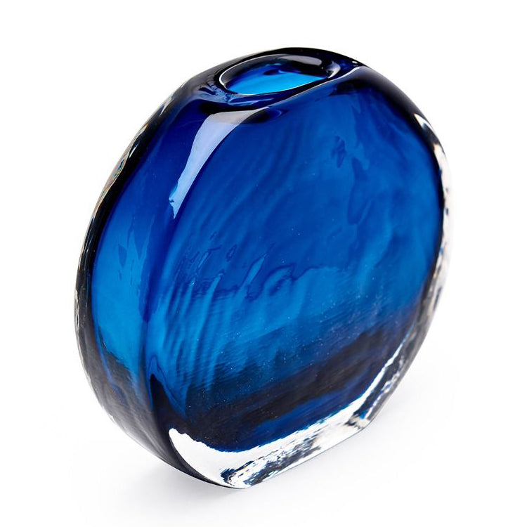 Crafted with two layers of mouth-blown glass skillfully joined into a single orb, the V&H Angeli references Italian design of the early 1970s in a heavenly azure. Fashioning each piece by hand, our artisans create ripples and waves which dance across the surface.
