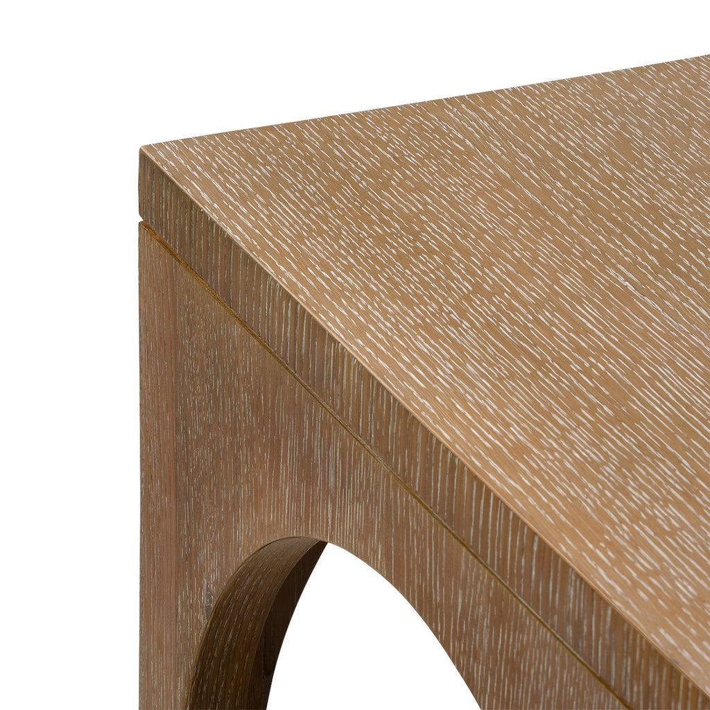 The V&H Arcadia 1-Drawer End Table brings sculptural charm and everyday function to your space. Crafted in Soft Glow Oak with a warm tone and visible wood grain, it features a modern arched cutout and a lower shelf for added storage. The single drawer with channeled detailing and an Antique Brass pull adds a refined touch. Compact yet eye-catching, it’s the perfect accent for living rooms, bedrooms, or reading nooks.