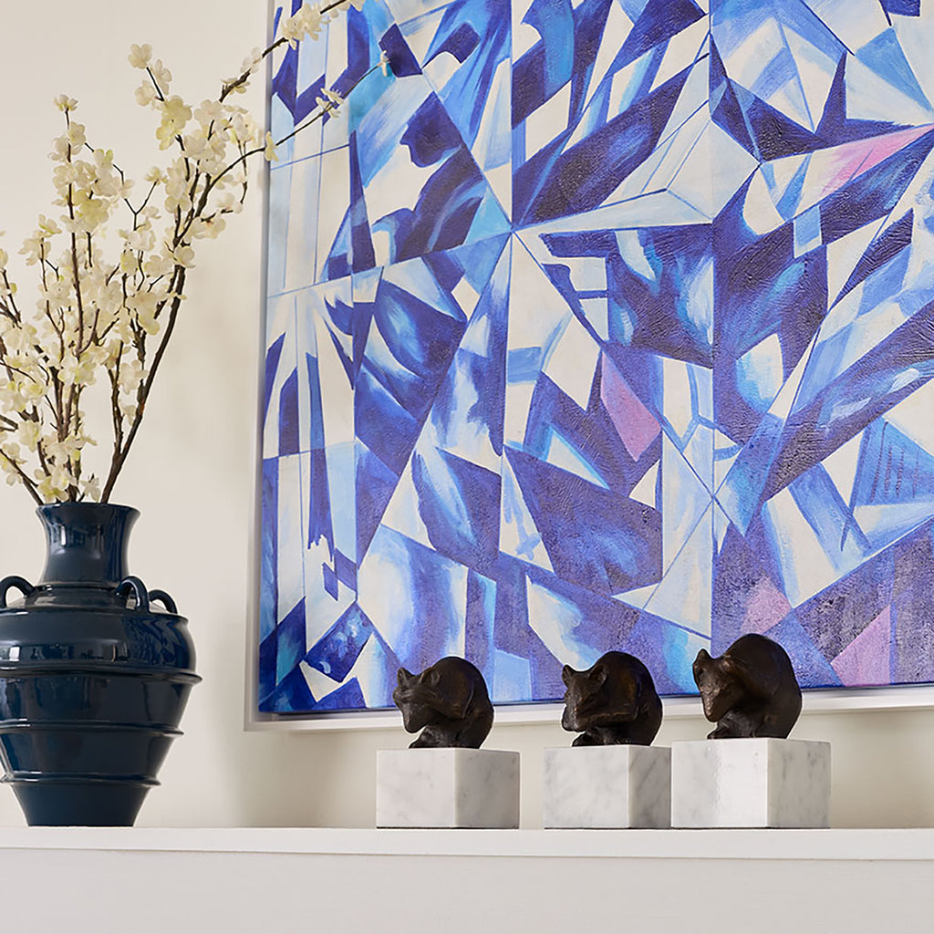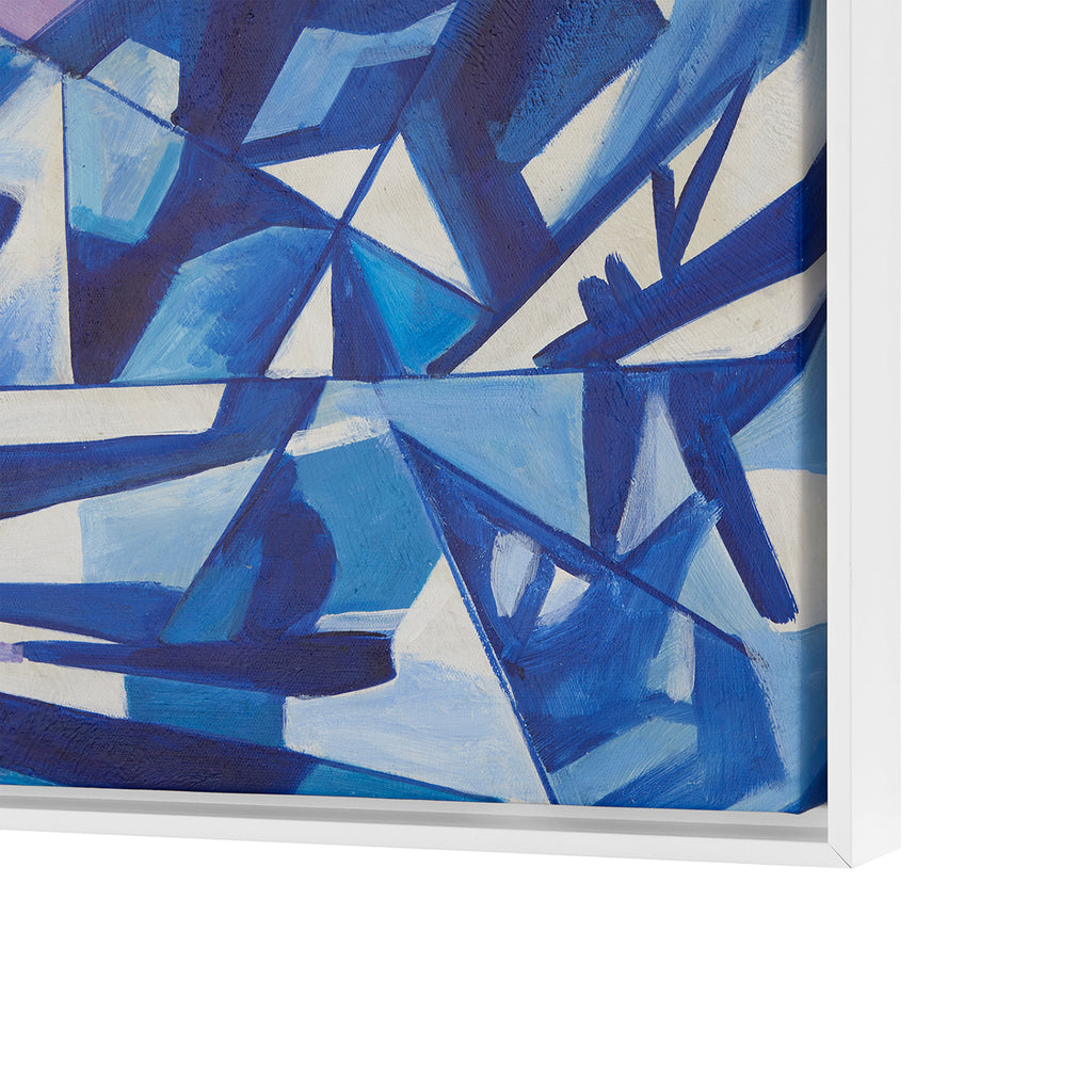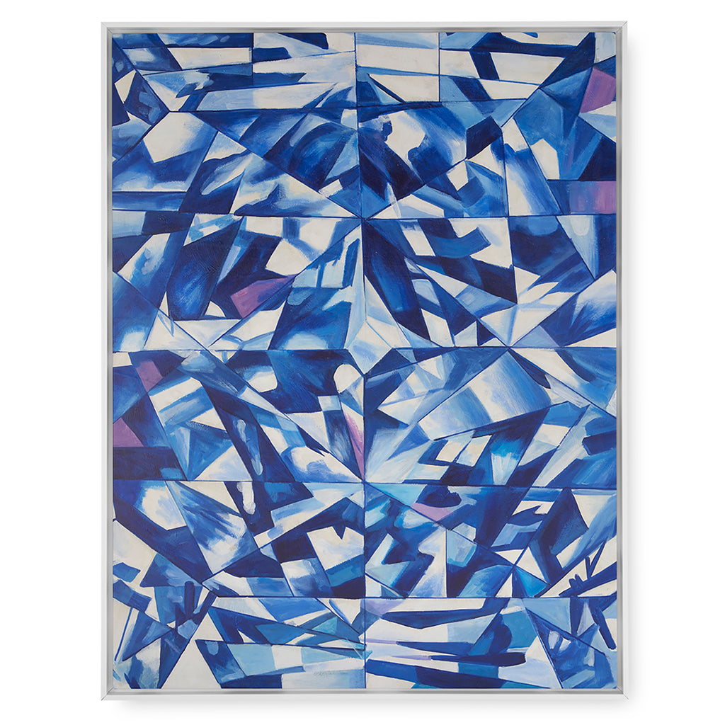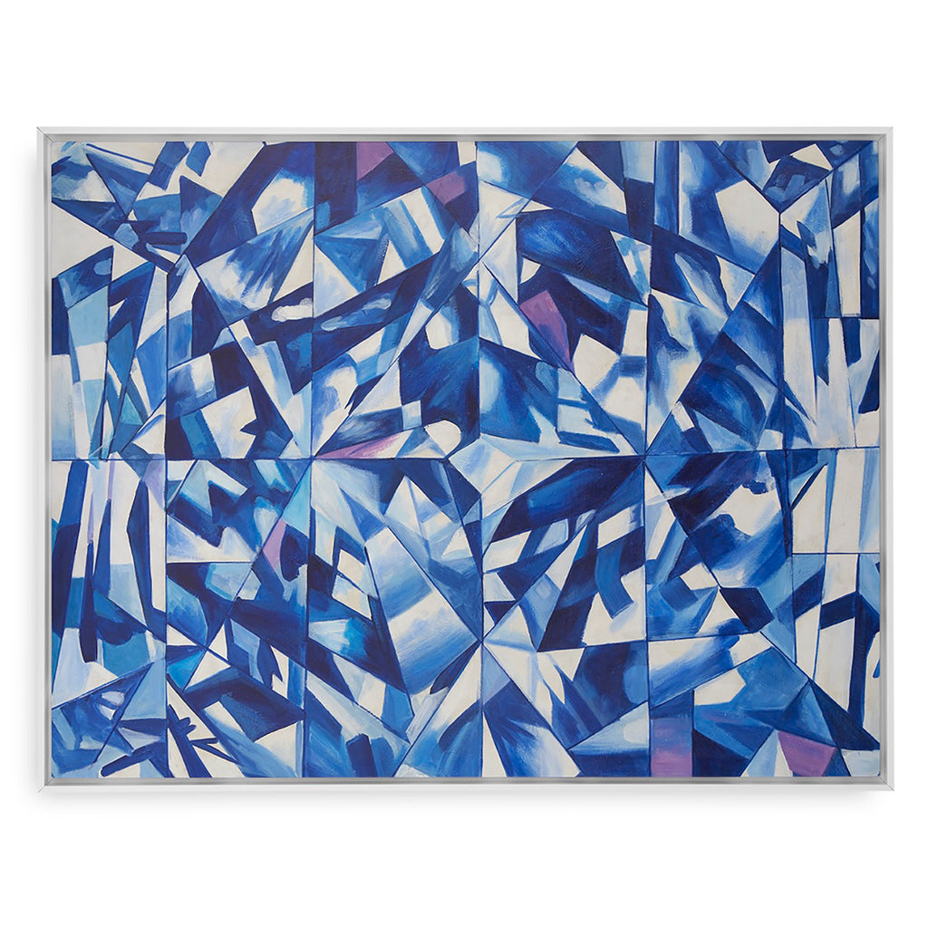 The Villa & House Asha Framed Canvas is a captivating hand-painted artwork that celebrates movement, light, and texture. Rendered in rich shades of blue and white, this abstract composition evokes the refracted glow of light dancing through a faceted jewel or the layered depths of a geode. The interplay of color and form creates a sense of depth and energy, making Asha both serene and dynamic. Framed for a polished finish, this piece brings a sophisticated, nature-inspired rhythm to modern interiors.