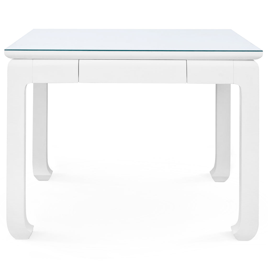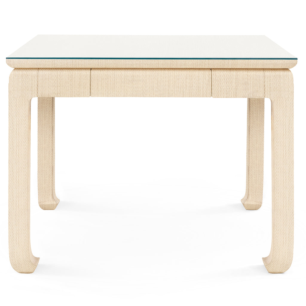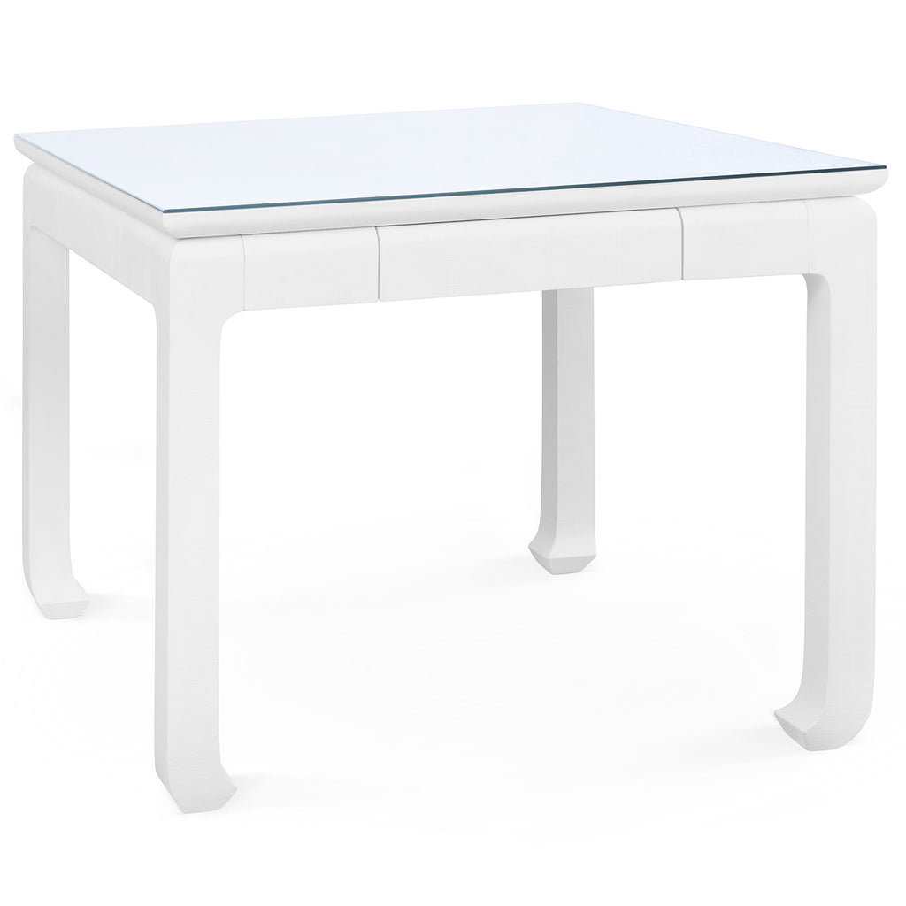 With harmonious proportions and chow-styled feet, the Villa and House Bethany Game Table from Villa & House is a substantial piece. Finished in a textural, lacquered heavy linen that almost reads like plaster, the Bethany has presence. The square table has four drawers on each side of the table, the perfect place for storing your cards, game pieces, and other knick-knacks.The Bethany is equally welcomed as a neutral moment in a beachy, coastal room like a pool house or as the centerpiece of a casual, brightly lit sunroom. In a small space, like an apartment or cottage, the Bethany Game Table conveniently comes with a glass top, so it could be used as a multi-purpose dining,kitchen table or floated in an office as a work desk.