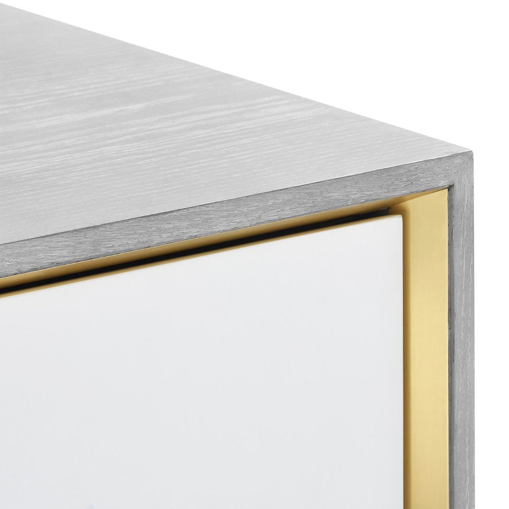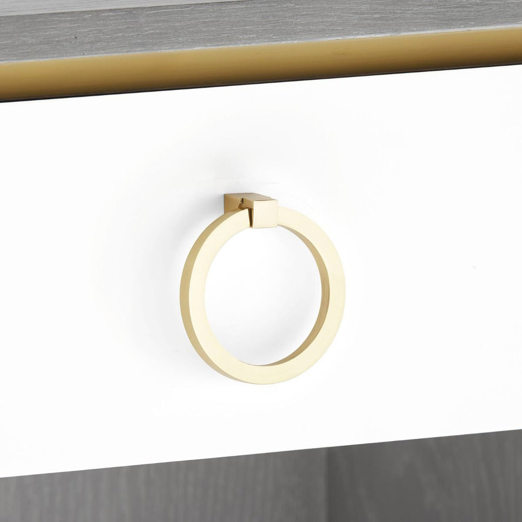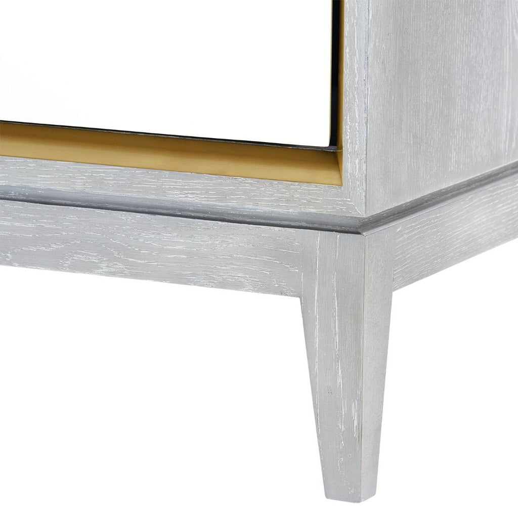 The V&H Cameron Collection unites many unique design features into an elegant and inspired presence for the home. The oak veneer cabinet houses lacquered drawers and doors which are framed in glittering polished brass. The matching pulls and accents are customizable: choose your shape and make it perfect.