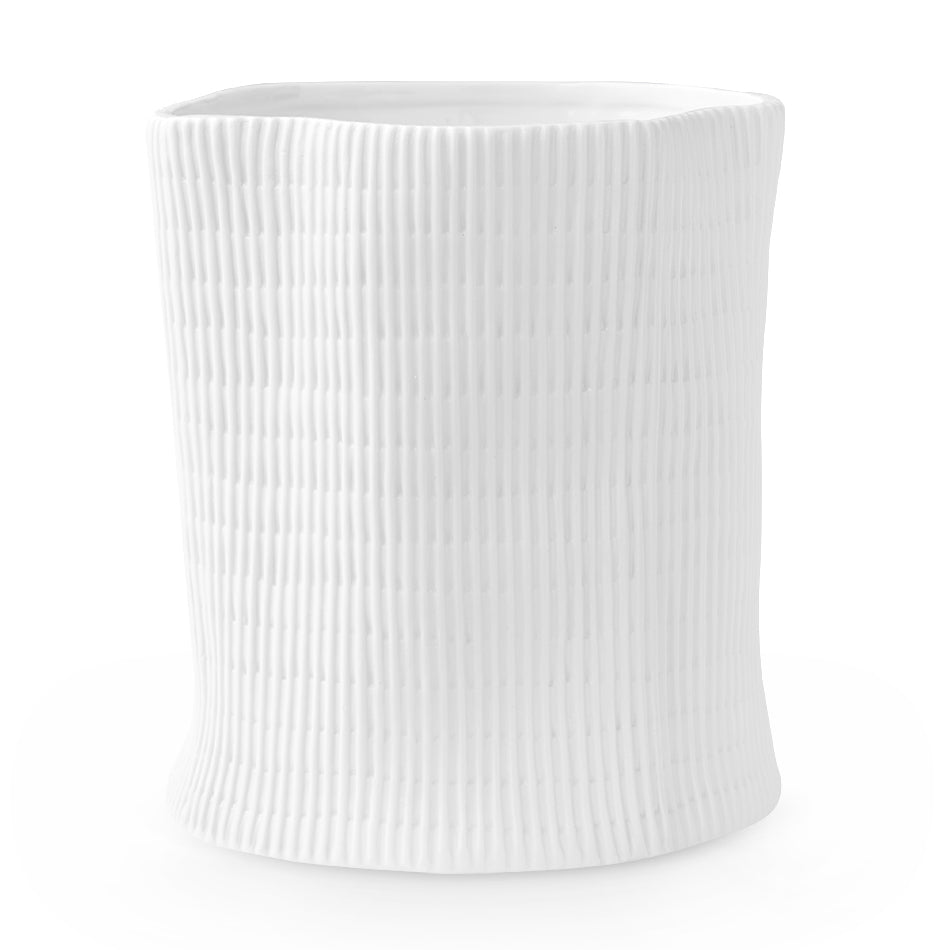 The V&H Corum cache pot or hold-all is made of Blanc de Chine Porcelain. Inspired by corrugated cardboard, our artisans are playing with the concept of taking inspirational from ordinary materials and creating objet d'art. The Corum is glazed inside and matte outside. It is unmistakably modern and minimal serving as a statement piece as well as a convenient container for orchids, or those small things that often go missing.