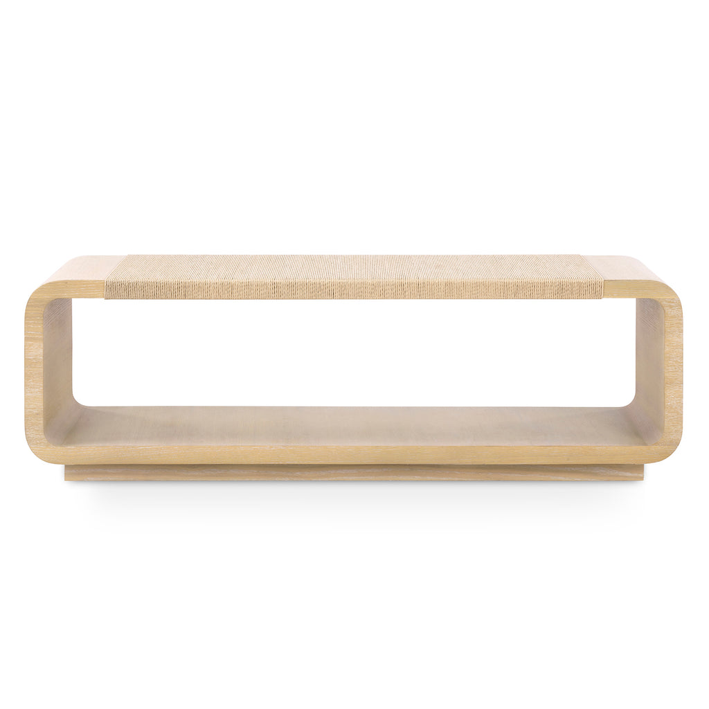 Curves and mixed materials are the hallmarks of our modern Emma Coffee Table. This piece brings updated flare to the classic 1970s waterfall silhouette with the addition of hand-wrapped rope on its top surface. It works perfectly between couches, or two could be paired together in a larger space. The Emma’s versatility can also extend into using it as a bench in an entryway or at the end of a bed.
