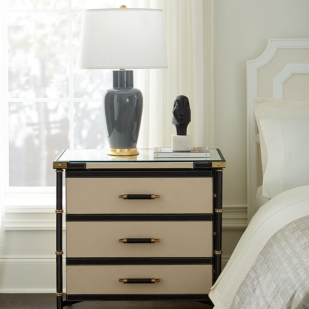 The Villa & House Kylie Lamp features a classic baluster silhouette in luminous glazed porcelain for a refined yet relaxed look. Its traditional form is grounded with a gold-leafed base and topped with a matching finial, adding a warm metallic touch.