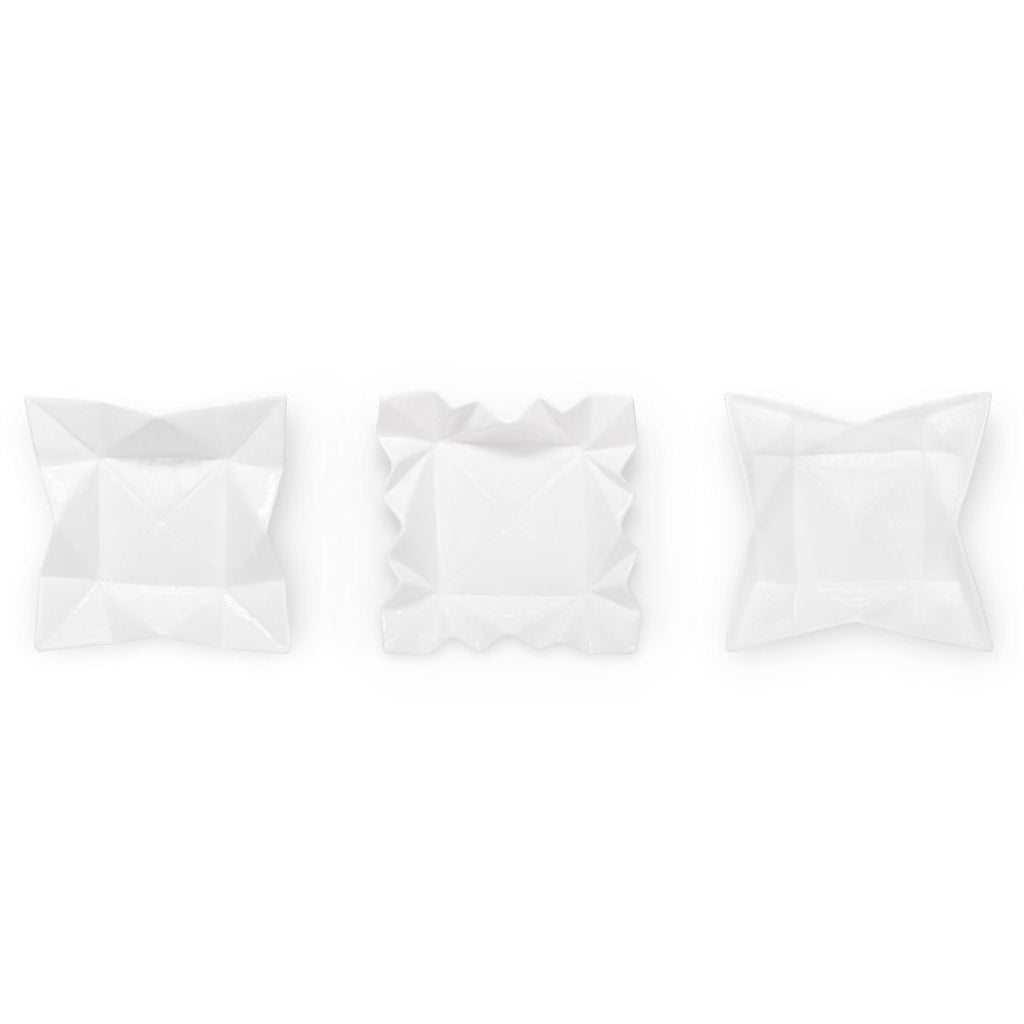 The set of three Origami Catchalls is handmade in fine porcelain by artisan potters. By applying traditional skills honed over many years to a modern and minimalist piece, they are blending the old with the new, and fashioning a piece which is timeless in its' beauty and usefulness. These catchalls set are great as pieces of art on an etagere, or useful centerpieces topped with fruit or flowers. With a glossy finish and Japanese flair, the uses are innumerable.
