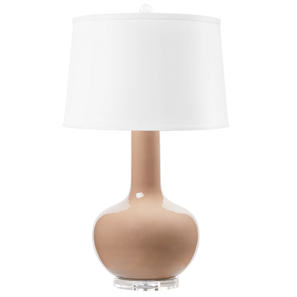 The Villa and House Pablo Lamp charms while exuding sophistication with its elegant single-gourd curved silhouette. Finished in a very pretty truffle color, it brings a vibrant yet refined touch to any room. Resting on a clear acrylic base and topped with a matching ball finial, the Pablo Lamp is a stylish and versatile accent that effortlessly elevates your interior décor.