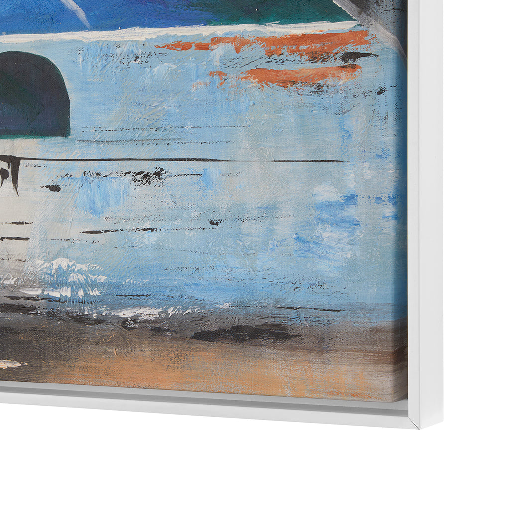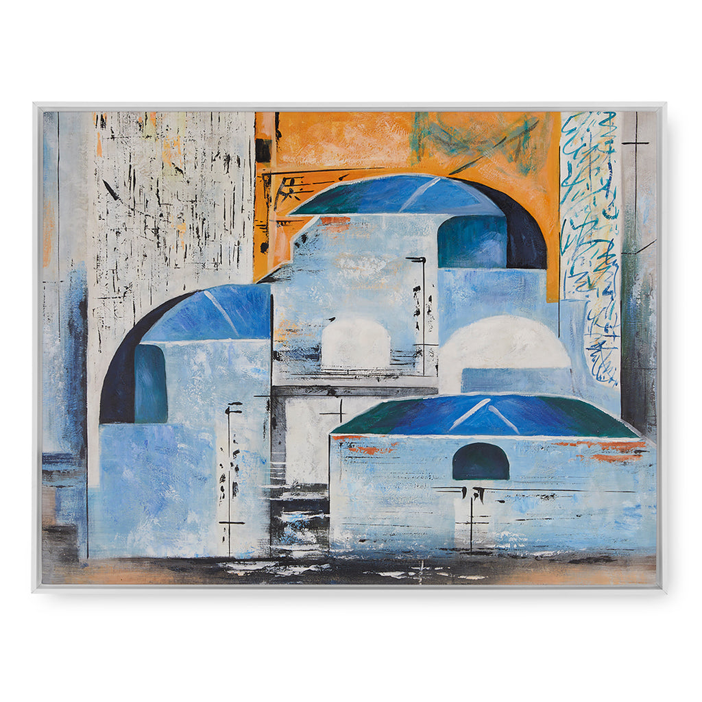 The Villa & House Reggio Framed Canvas is a hand-painted abstract that captures the spirit of sun-soaked travels and ancient landscapes. Reminiscent of an impressionist postcard, its layered geometry and warm, earthy hues evoke weathered stone, sunlit facades, and architectural fragments from distant lands. The interplay of form and color radiates warmth and nostalgia, offering a sense of place without depicting a specific scene. Framed for a clean, gallery-ready presentation, this piece brings texture, light, and a worldly sensibility to any interior.