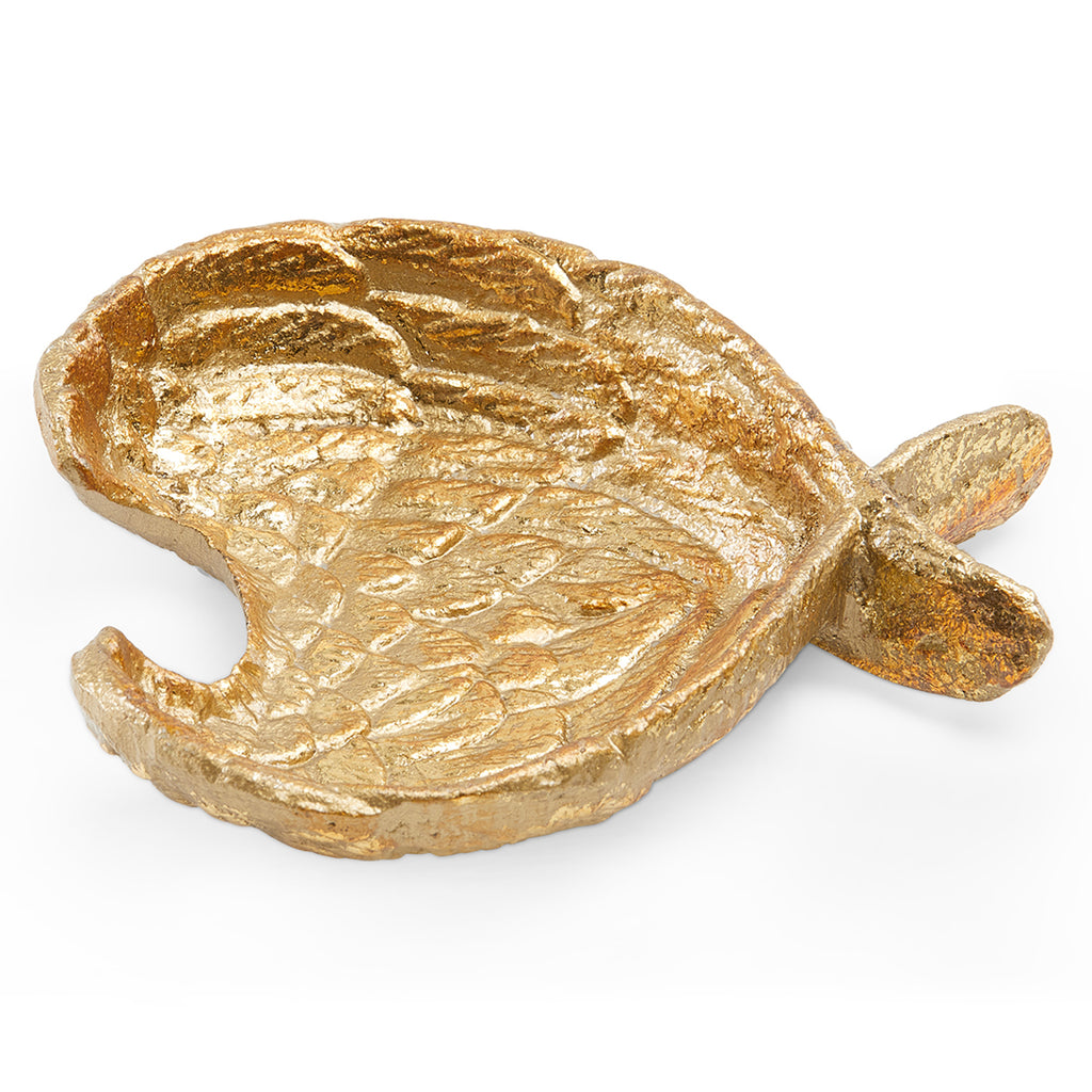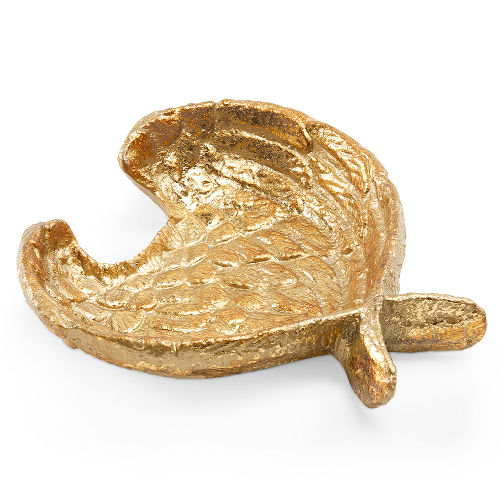 The Villa and House Speranza Bowl, named after the Italian word for "hope," is a small bowl shaped like wings, symbolizing beauty and optimism. Crafted from cast metal and finished in stunning gold leaf with a clear lacquer, it serves as both a striking accent and a practical catchall. Perfect for keys on an entryway console or jewelry on a bedside table, this piece adds charm to any space.