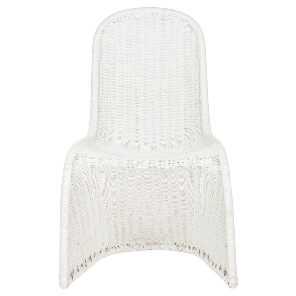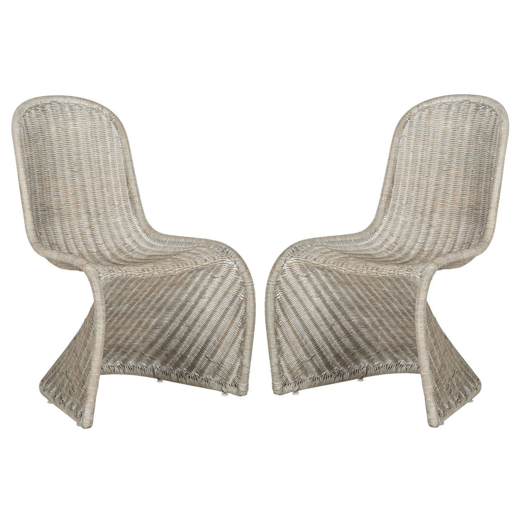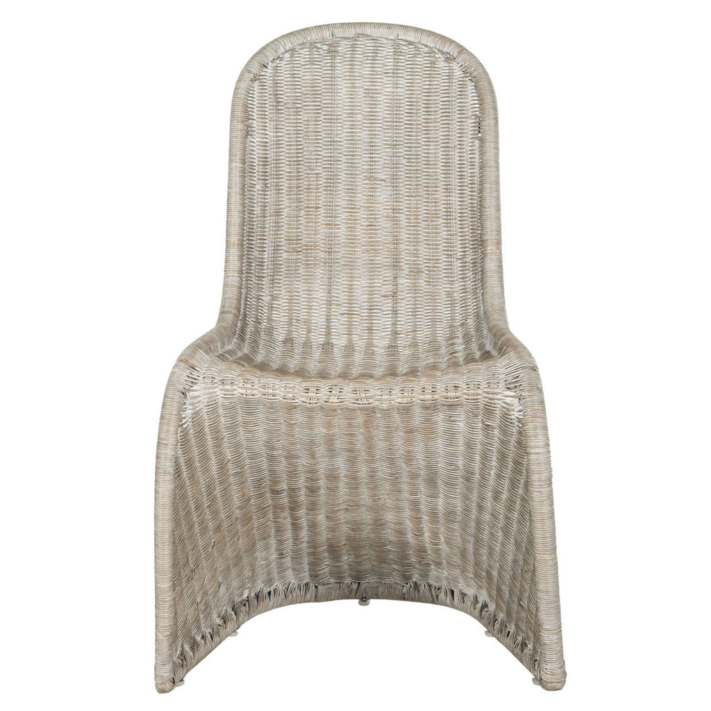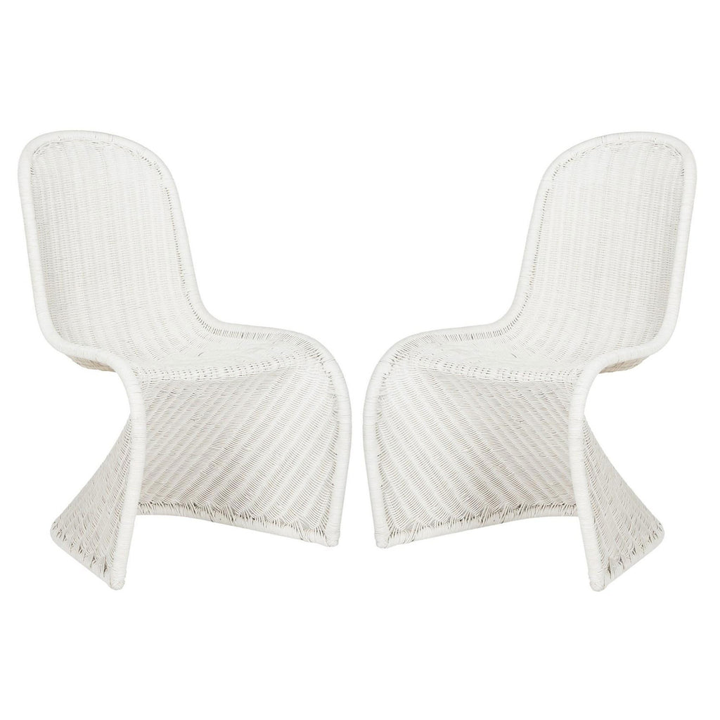 This contemporary wicker side chair is reminiscent of Verner Panton’s Danish design classics. Crafted in a neutral shades, its modern curves and geometric weave pattern bring an elevated sensibility to the well-appointed residence.