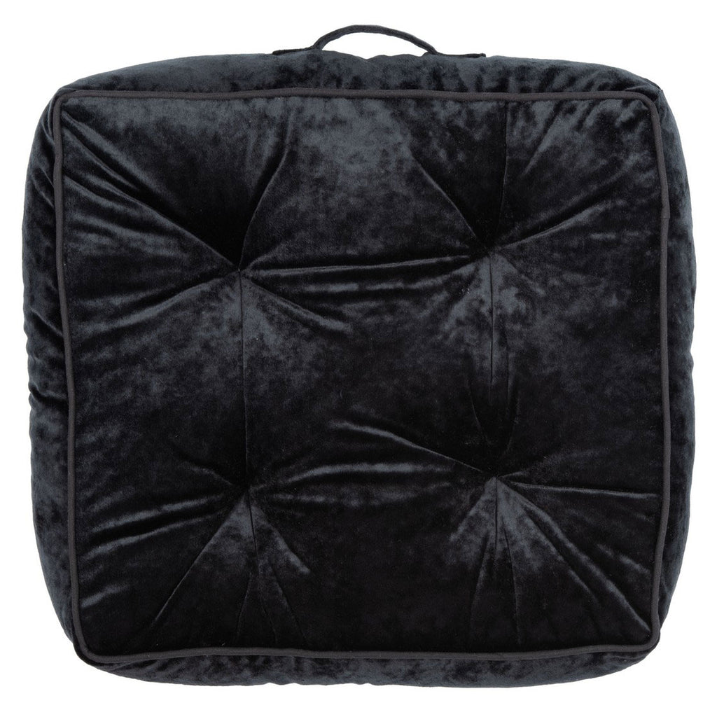 Looking for an extra seat for a penthouse soiree or casual game night? This velvet floor pillow offers a plush comfortable seat and fashionable accent accessory to elevate the look and feel of any room decor. It shimmers in a soft pink color or ultra-stylish black using silky smooth synthetic fabric. For easy storage and transport, this tufted square cushion comes with a cloth handle.