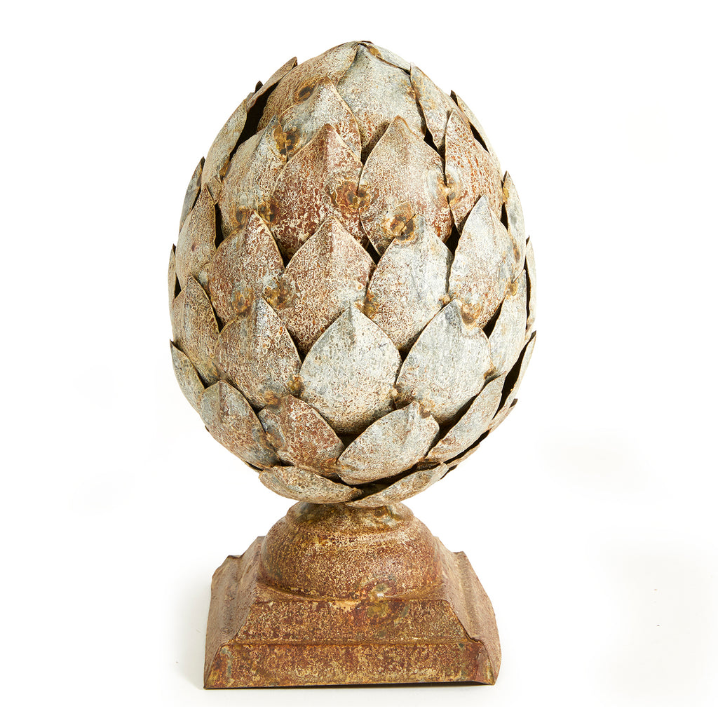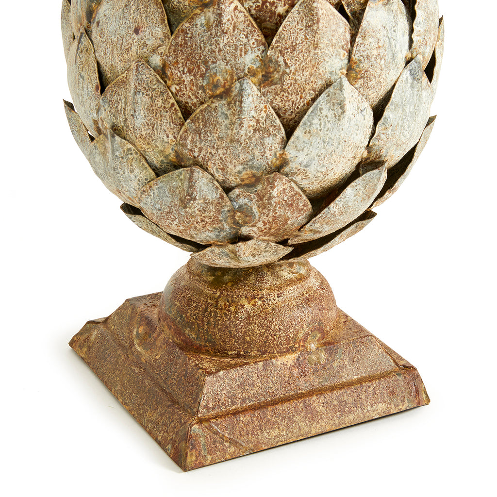 Constructed out of iron and galvanized metal, this oversized artichoke finial adds texture and depth. A great way to bring in that market-found look to your space.