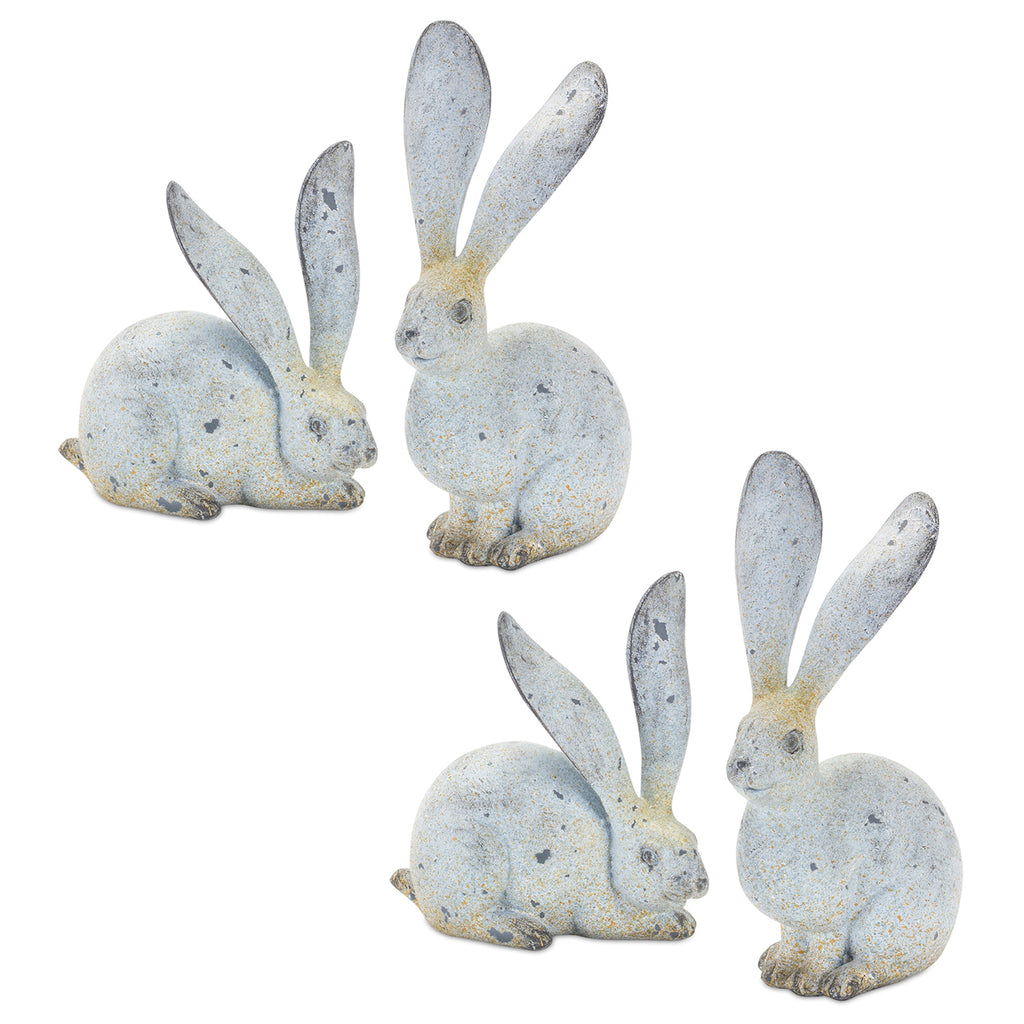 The beautiful set of Rabbit Figurines is the perfect addition to your spring decor. Featuring two assorted designs, this set is sure to add a touch of nature to your living space. The weathered painted finish paired with the cool green and brown tones is the perfect combination to create a stunning display. Place the pieces togheter to make a statement, or display them throughout your home to add interest to the rooms.