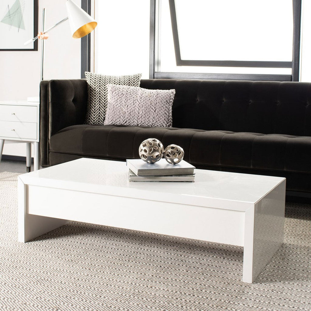 A combination of form and function, this lift-top coffee table was inspired by the Paris office of a top gallerist. Its polished white lacquer finish lends a posh disposition to any contemporary interior and its ample storage makes it a designer favorite.