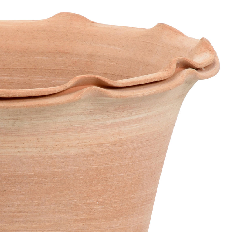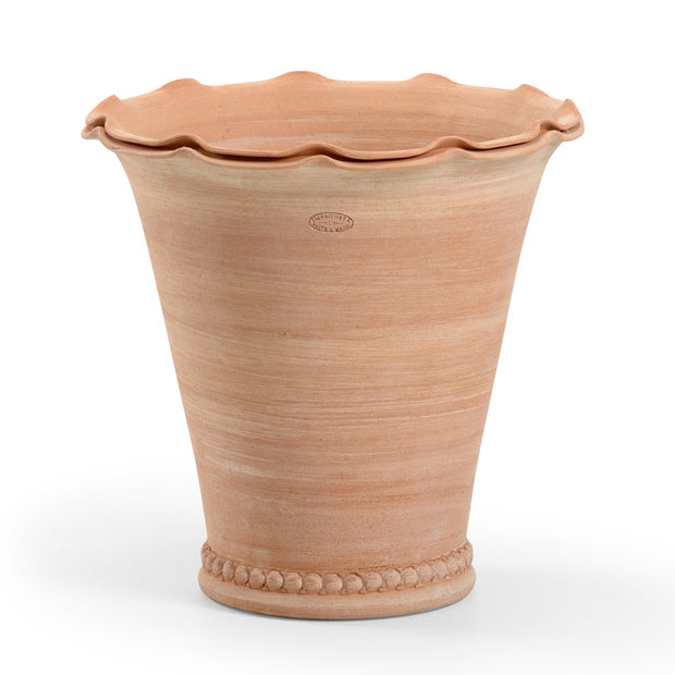 Enhance your everyday décor with this elegant piece from Wildwood. Timeless and chic, this décor fuses timeless texture with a gorgeous finish to capture attention. The Wildwood Impruneta Fluted Tuscan planter or pot in Natural Terracotta, handmade in Impruneta, Italy.