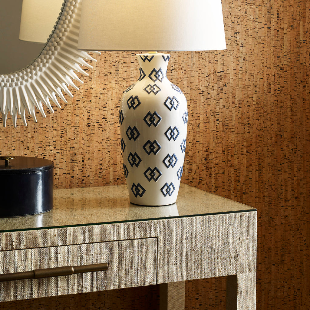 In a classic combo , the linked in lamp from the Cheryl Luckett collection for Wildwood adds novelty and texture in a fun and playful lamp.