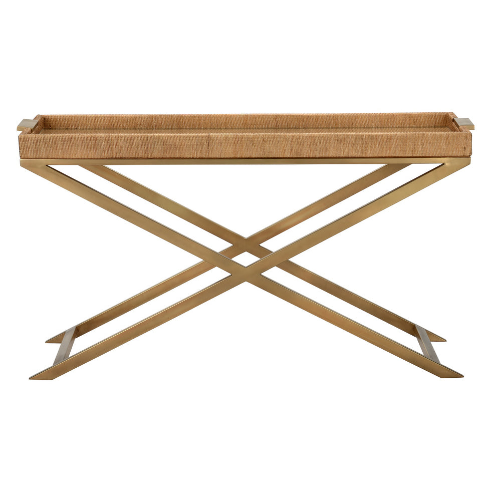 Vieux Carre Console i is an ideal table for an entryway in a transitional or coastal home. The intricately woven cane provides visual interest to the tray top design. Tempered glass has been added to protect the cane and to provide a stable surface for a lamp and other decorative accents.