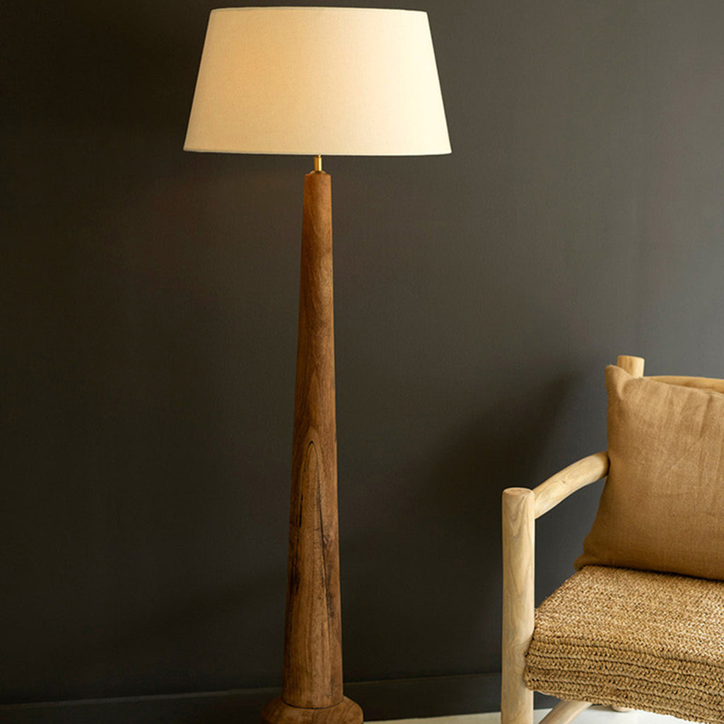 Unusual lamp lovers look no further. This interesting lamp base is round and the bottom and tapers to the top. This wooden floor lamp, made in India, adds charm and illumination.