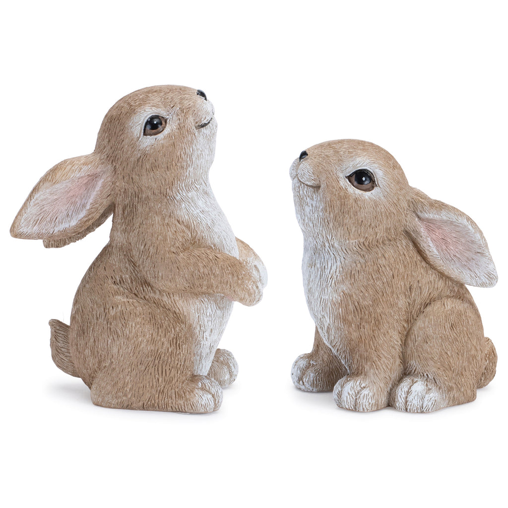 Bring serenity into your home this spring season with a stunning set of Bunny Figurines. Featuring four pieces and two assorted designs, this set is a great fit for your country cottage or woodland style of decor. The warm beige tones paired with the adorable bunny rabbit design are perfect to create a memorable display. The quality polyresin composition is sure to endure for seasons to come. Display the pieces on your bookshelf or coffee table to make a statement, or gift them to a nature-lover in your life to share the beauty!