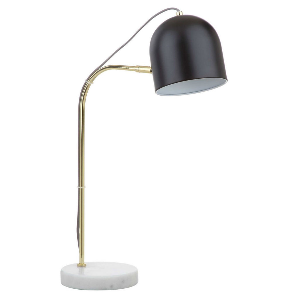 Designed to shine light exactly where it’s needed, this contemporary table lamp is a new classic. Inspired by the home of an art curator, a white marble base supports its sleek black and gold-finished metal body. Ideal in the living room or home office.