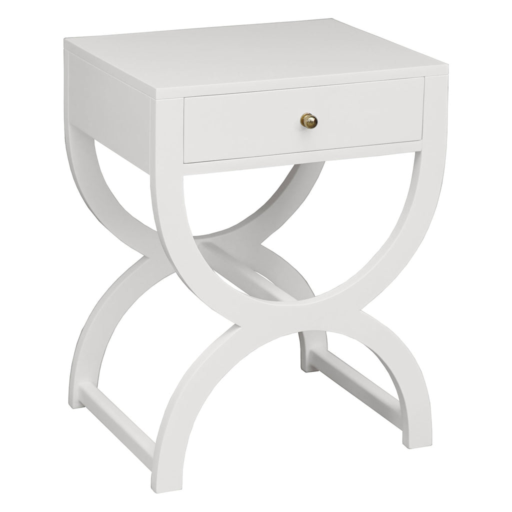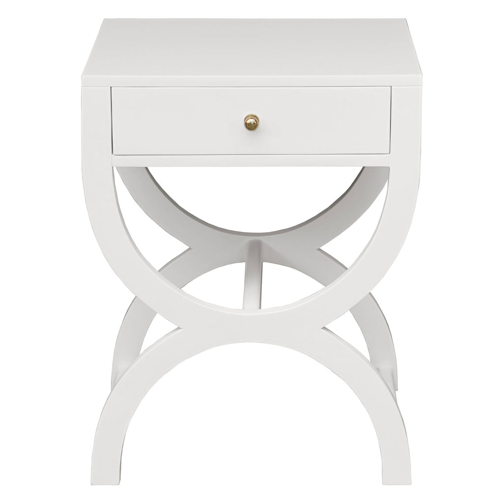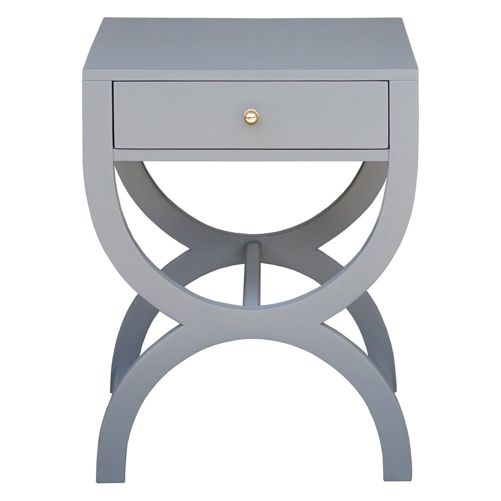 Worlds Away's contemporary glamor comes to life upon this gorgeous side table. Its eclectic textures complement a range of styles, making it the perfect addition to a bedroom or living room. Clean, elegant lines give this furnishing an elevated finish. One drawer side table in gray lacquer or white lacquer.