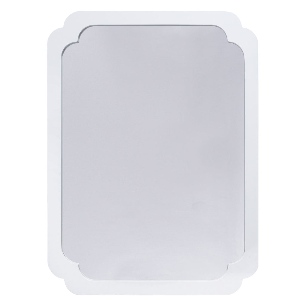 From Worlds Away, this wall mirror invites guests to peer into its design with contemporary allure. Hang this accent in a foyer, hallway or living room for a statement look. White lacquer pinched corner mirror.