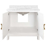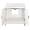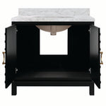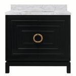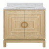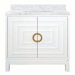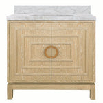This bath vanity from Worlds Away brings beautiful sophistication to your bathroom. Contemporary details give this one-of-a-kind piece a gorgeous presence in your space, while its clean lines offer a bold yet simple statement. The Art Deco-inspired Worlds Away Bixby bath vanity is the ultimate centerpiece for your master bath or powder room. An artful combination of natural materials and geometric, dimensional surfaces, Bixby delights with rich cerused oak, repeating raised square pattern, and antique brass circle hardware. Crowned with white Carrara marble top and porcelain sink.