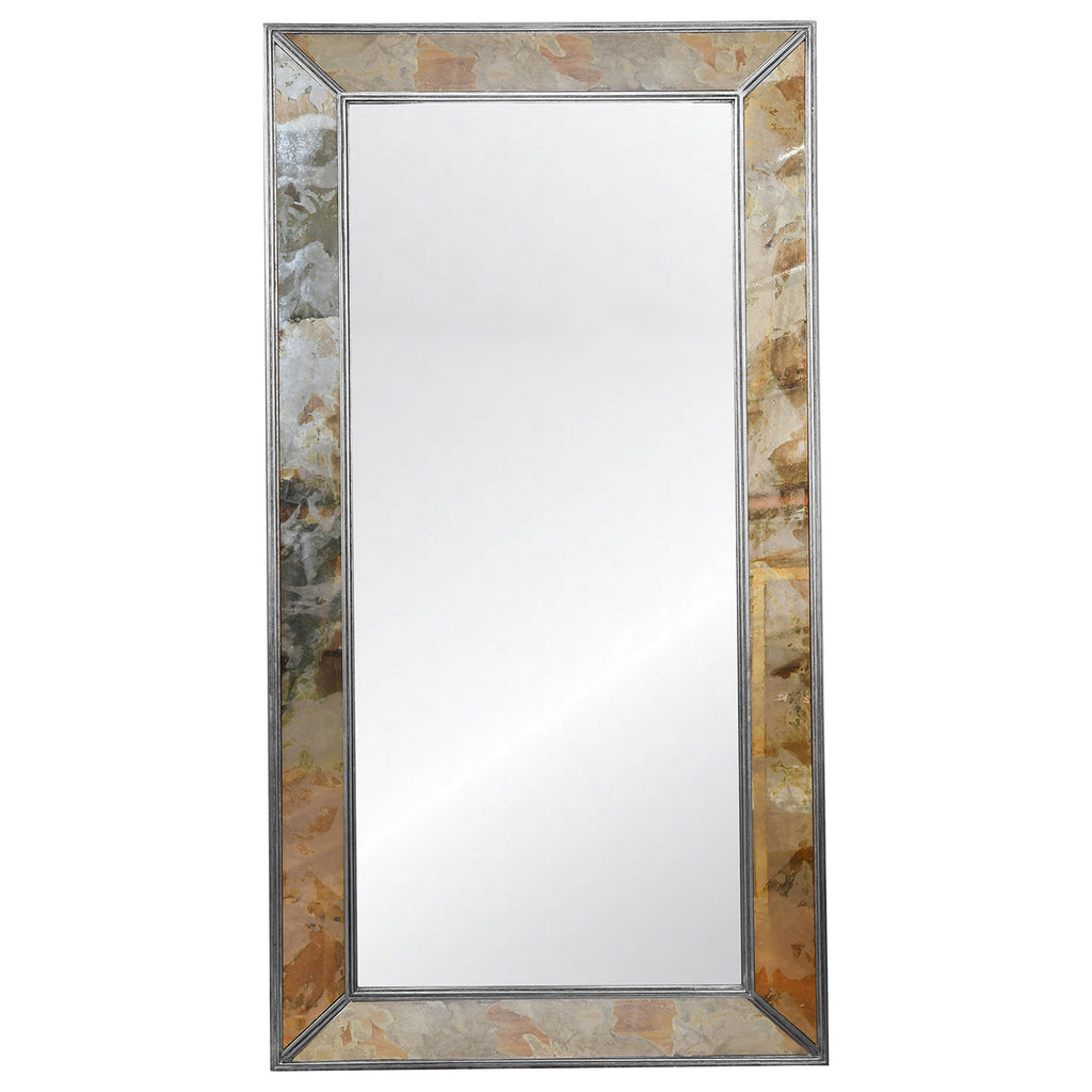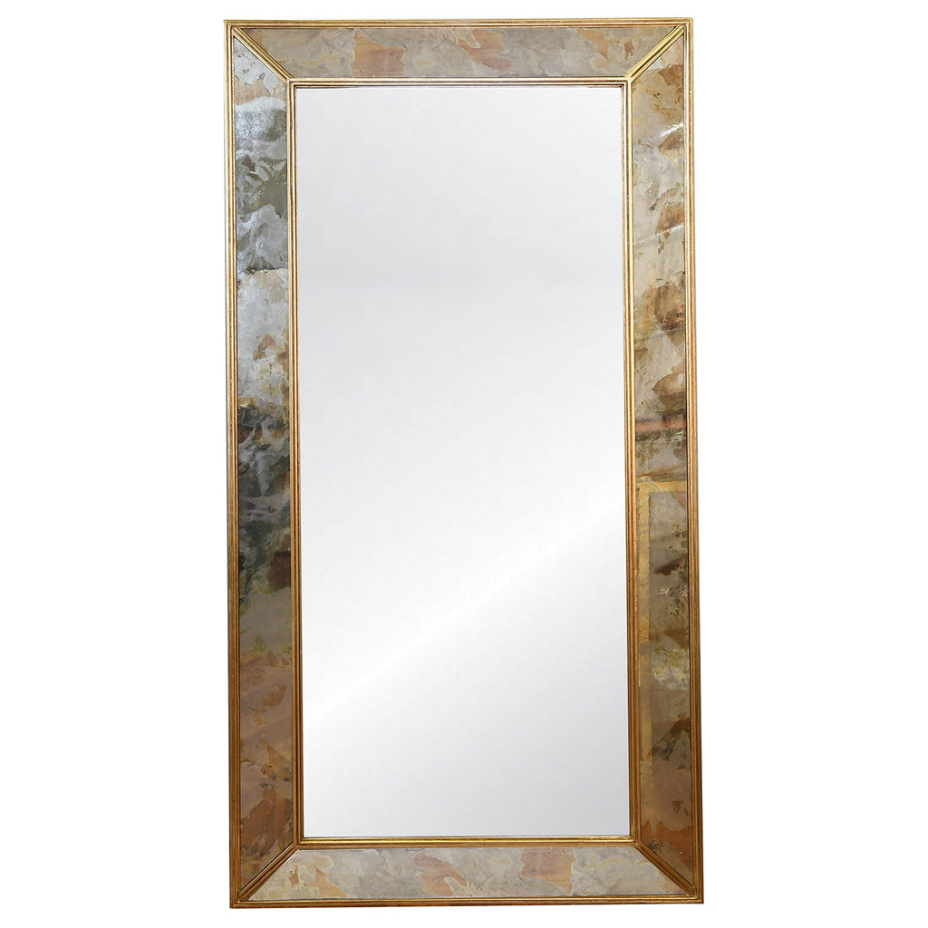 From Worlds Away, this wall mirror invites guests to peer into its design with contemporary allure. Hang this accent in a foyer, hallway or living room for a statement look. The Worlds Away Dion rectangular antiqued floor mirror with Gold Leaf or Silver leaf edging.