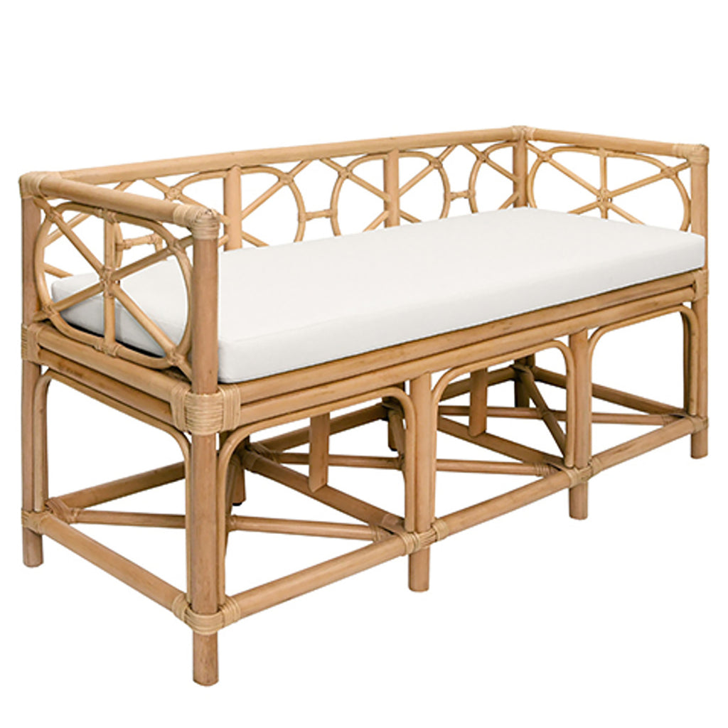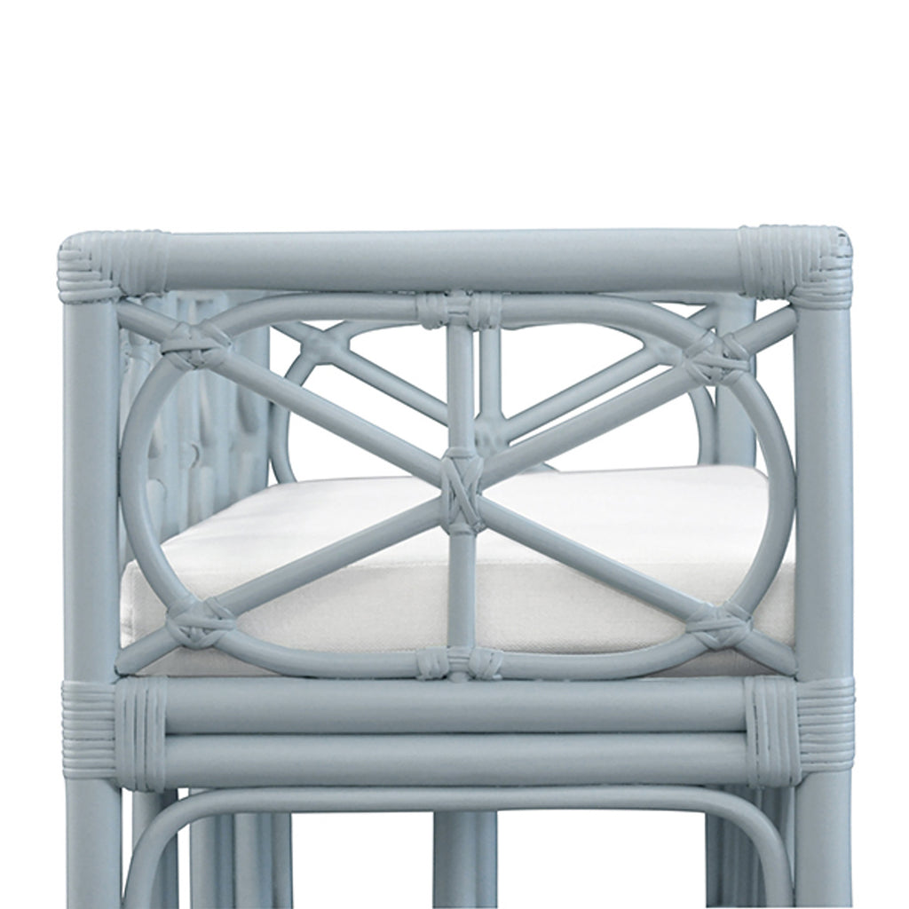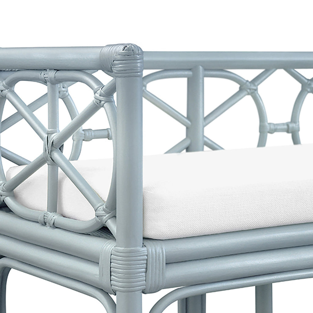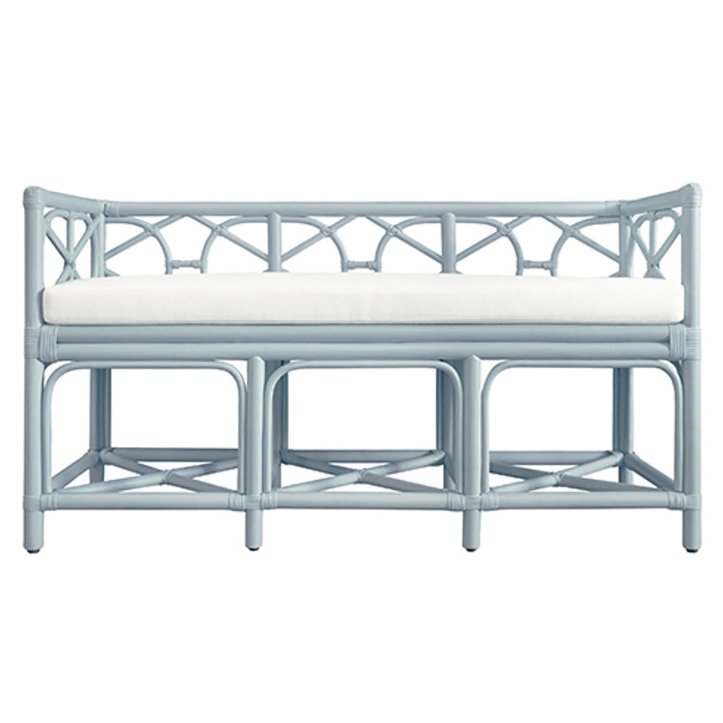 • Decorative bench with performance ivory cushion in rattan painted light blue or natural rattan