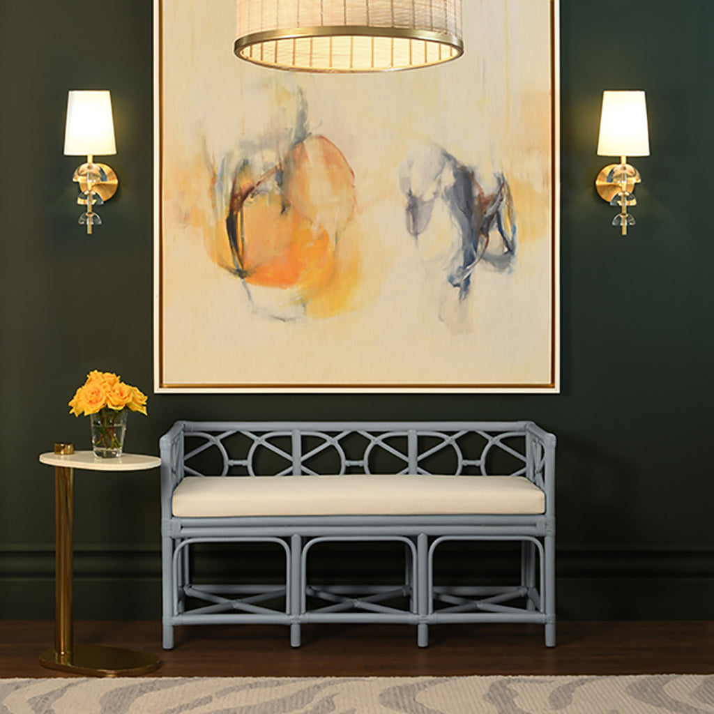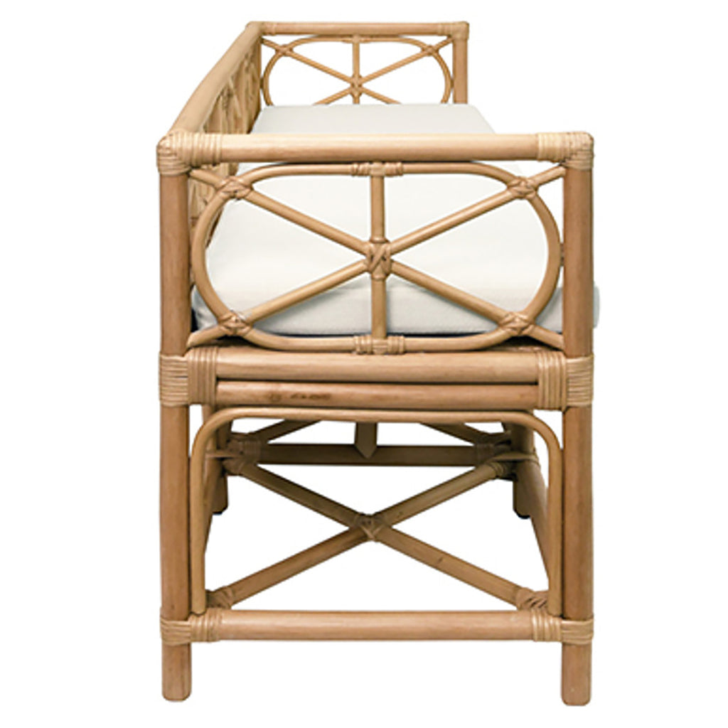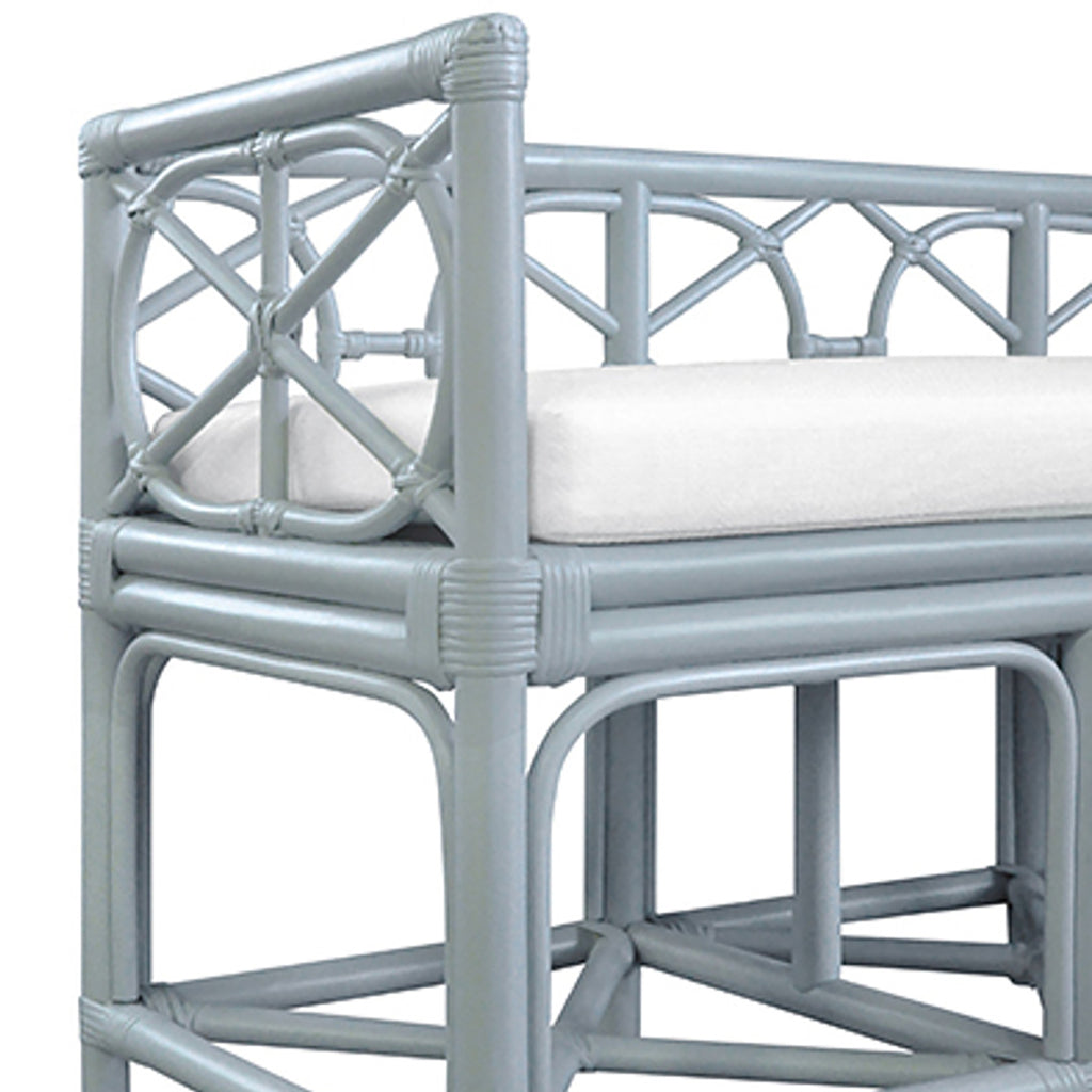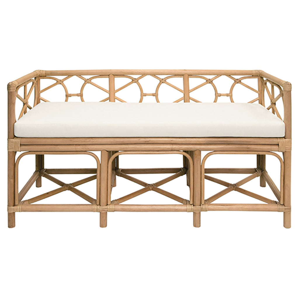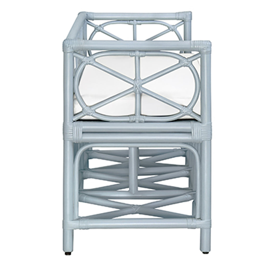 • Decorative bench with performance ivory cushion in rattan painted light blue or natural rattan