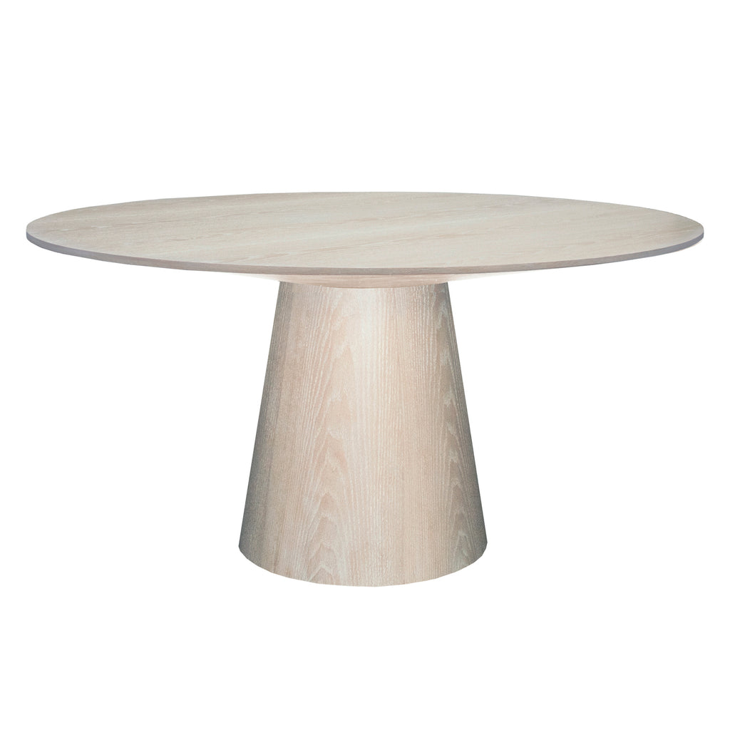 Enjoy the company of guests in elegant style with this Worlds Away dining table. Impressively chic, this minimalist design captivates with bold allure. A simple round top sets the stage, while a gorgeous base delights with effortless sophistication. Round cerused oak or white lacquer dining table base and top.