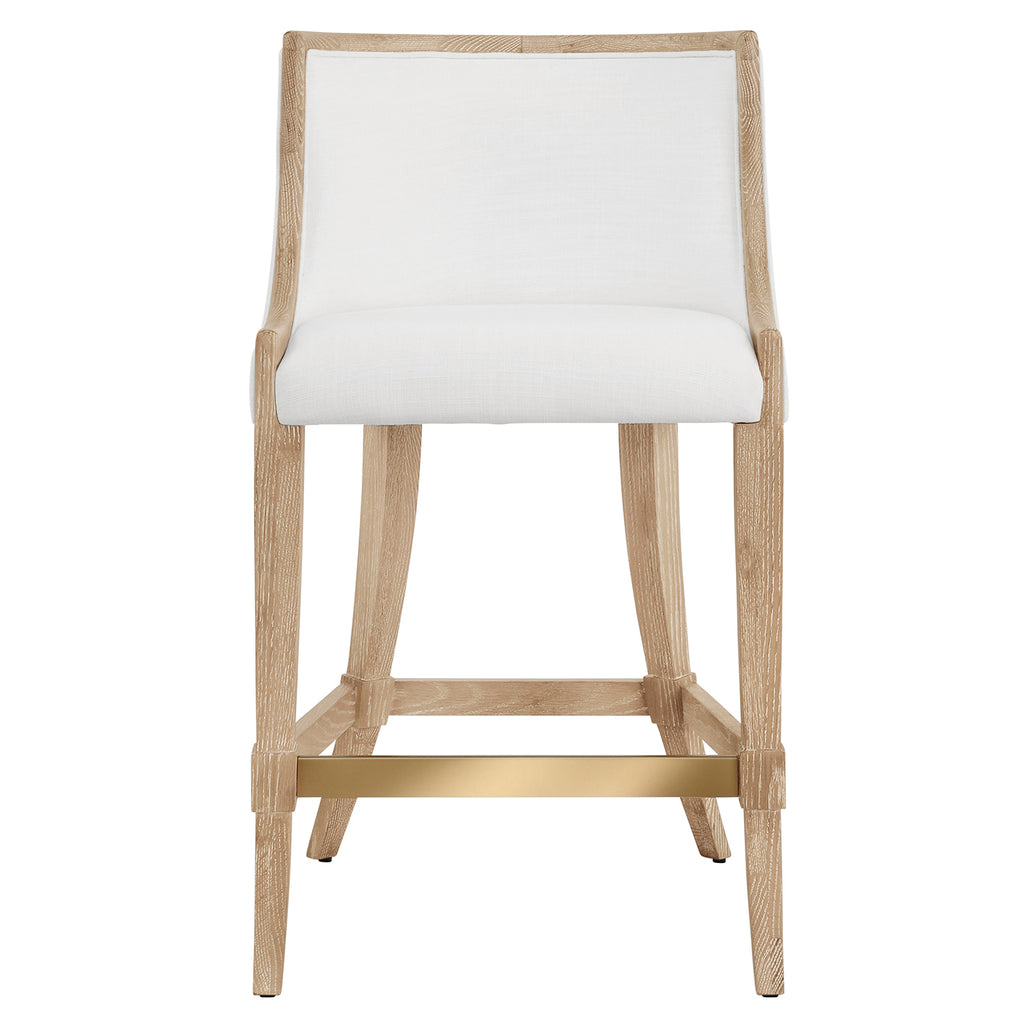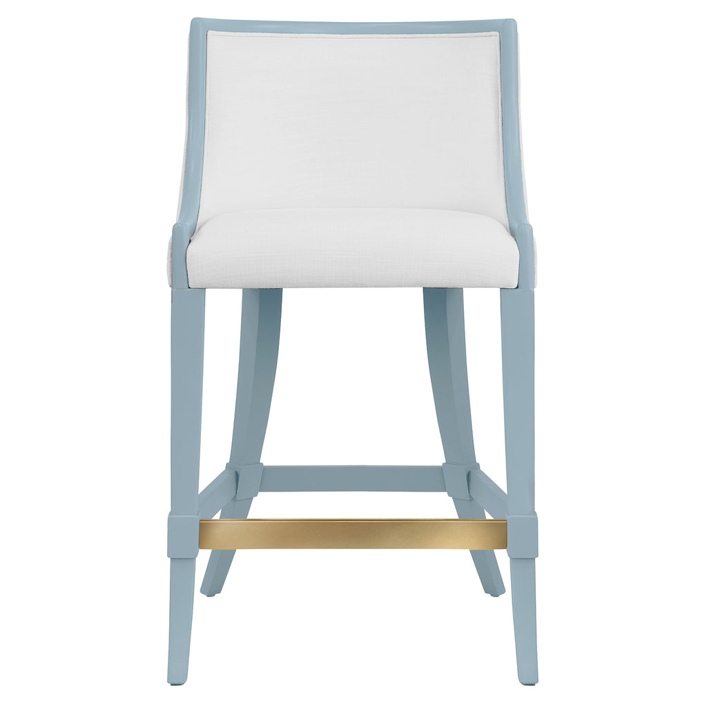 Klismos leg counter stool with performance white linen upholstery in matte black lacquer