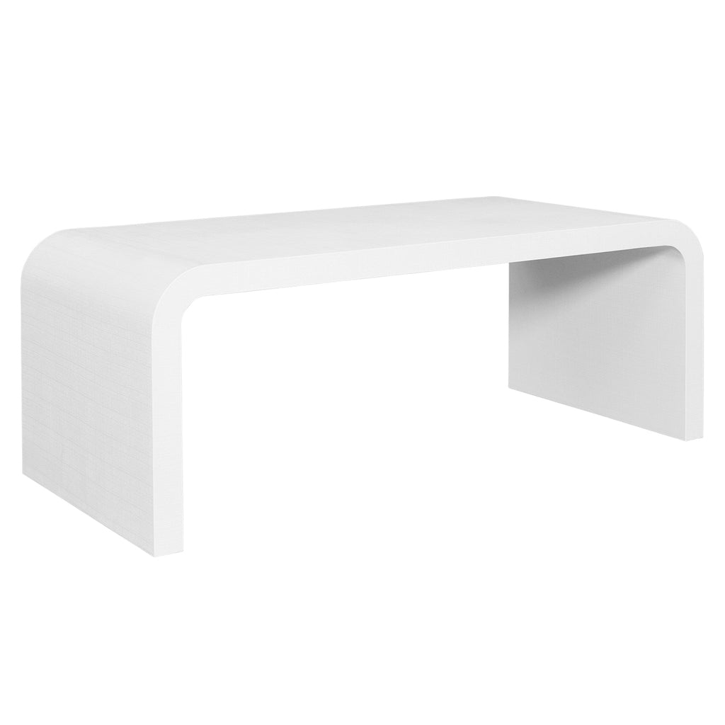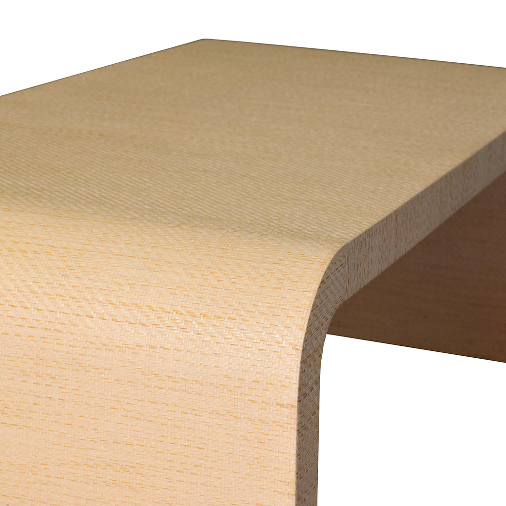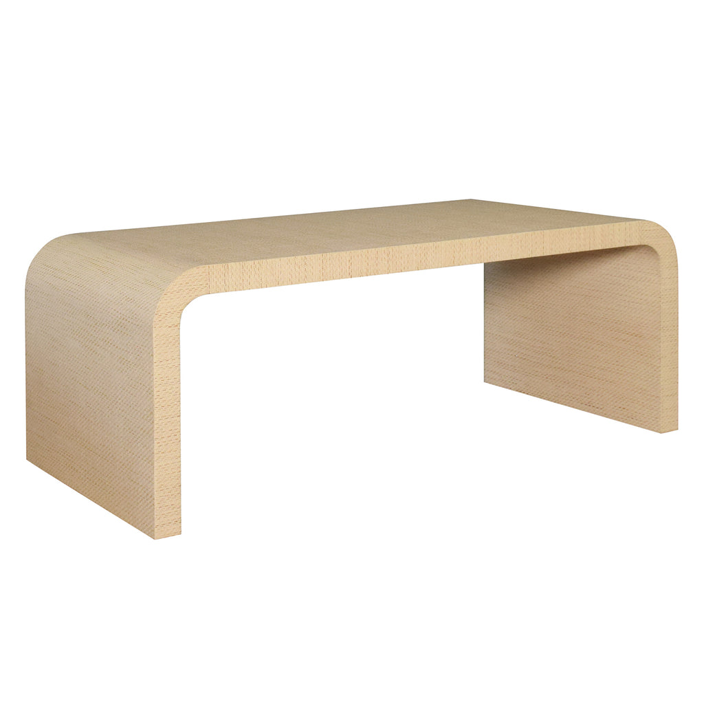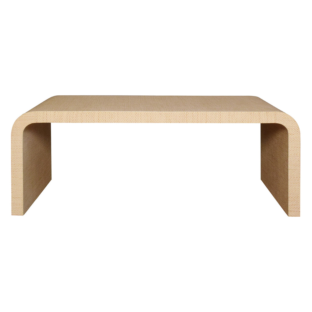 Our mid-century modern, waterfall cocktail table stands out in a crowd. Arcing silhouette and rich, natural grass cloth speak to one-of-a-kind, old world craftsmanship. As a dramatic centerpiece, Newbury NAT sets the tone for a luxurious, high style living space.