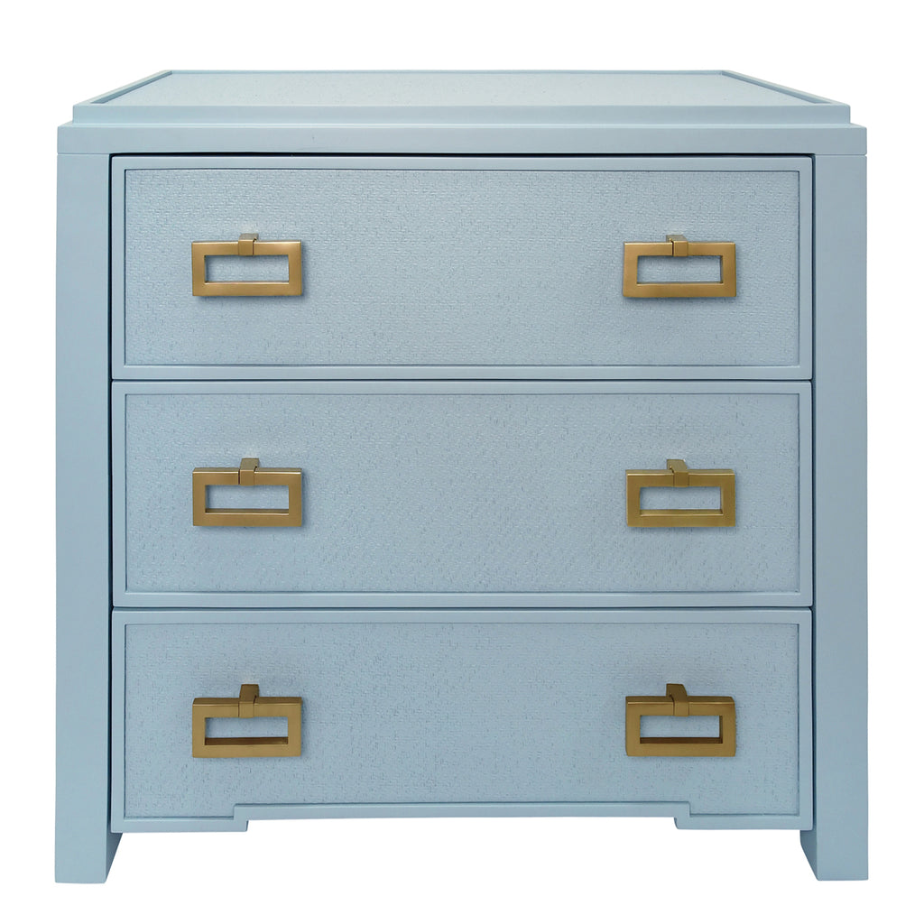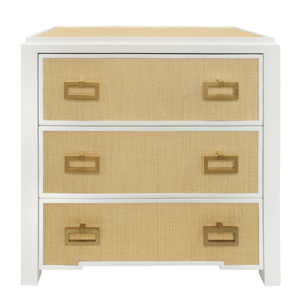 • 3 Drawer side table with grasscloth drawer fronts