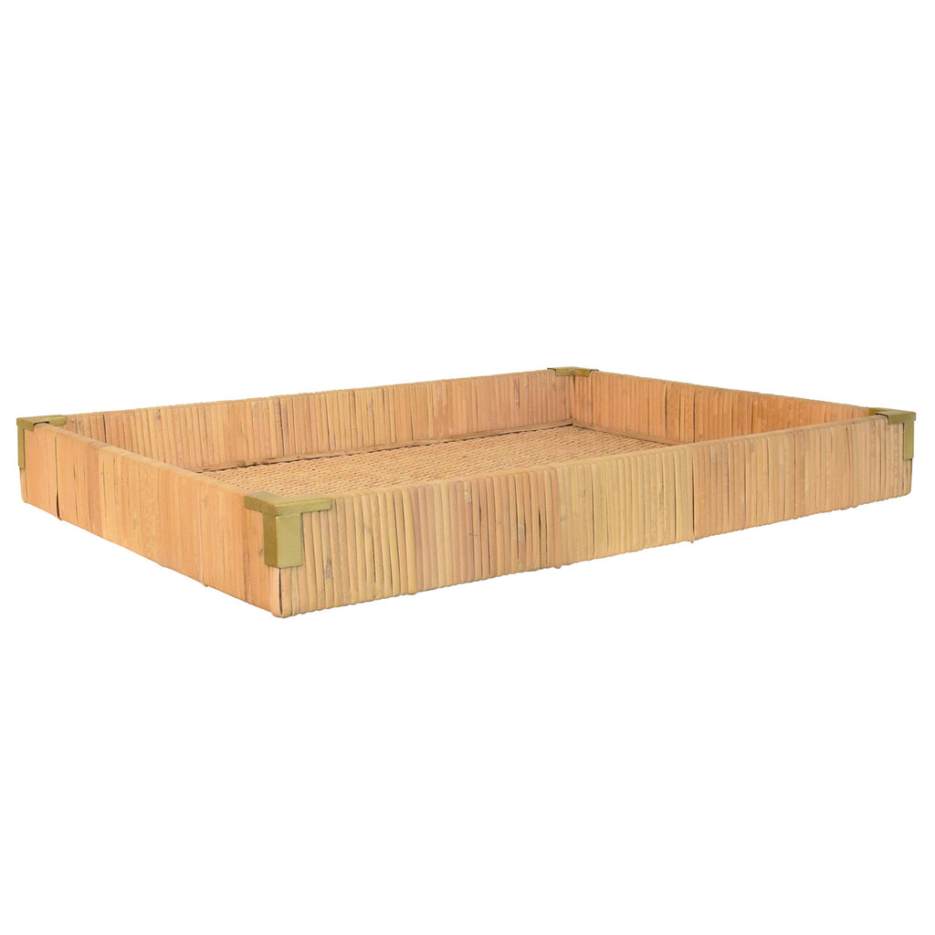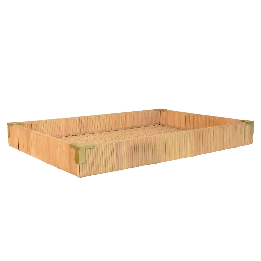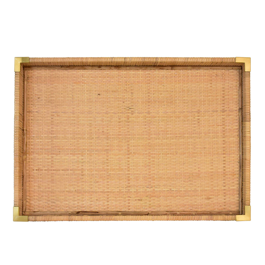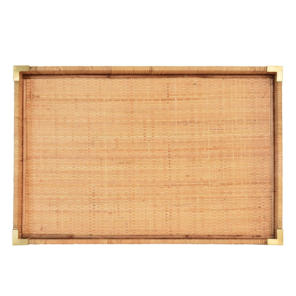 • Small rectangular natural rattan wrapped trays with brass corners