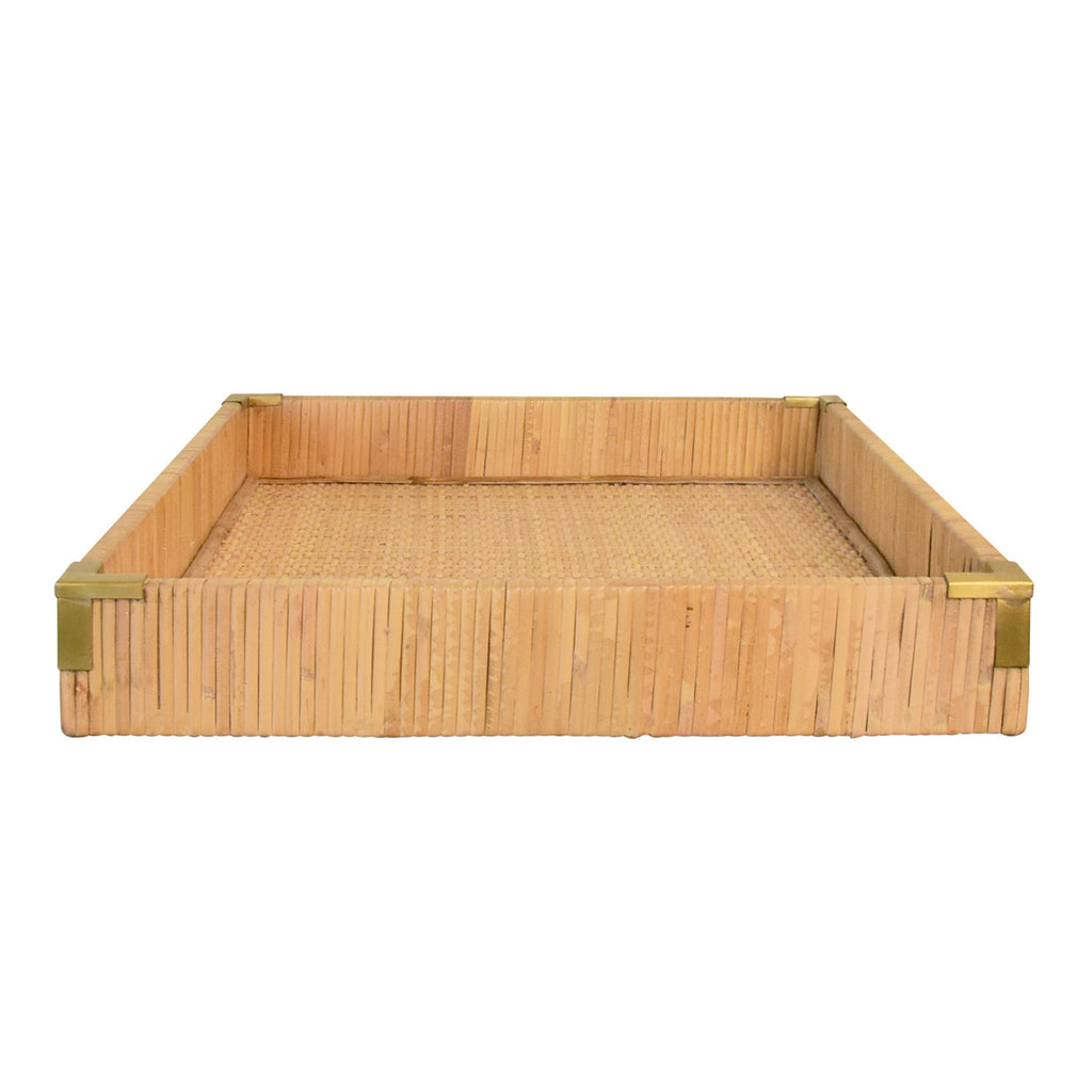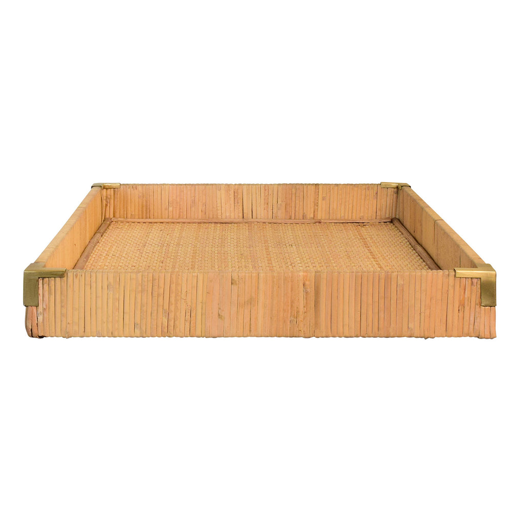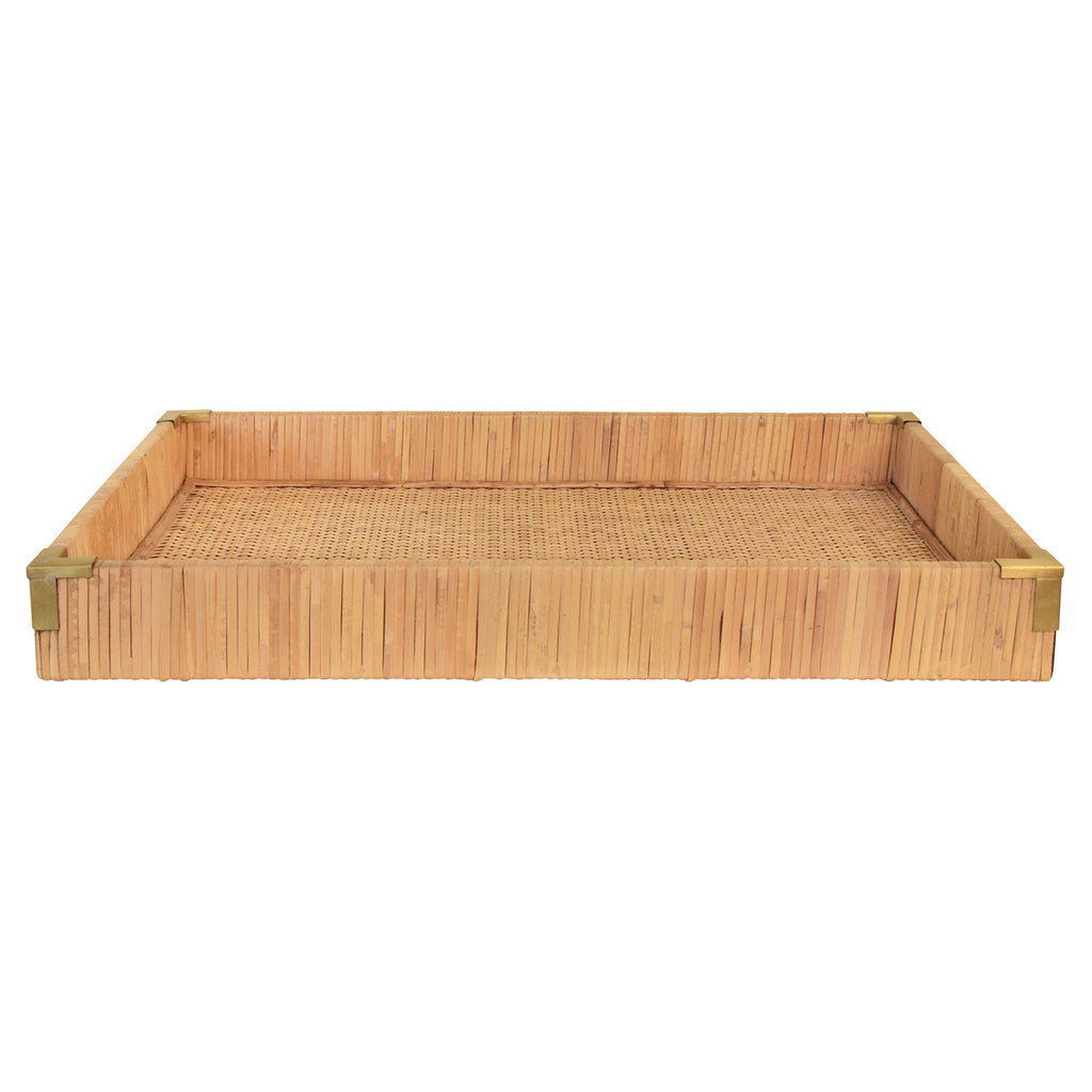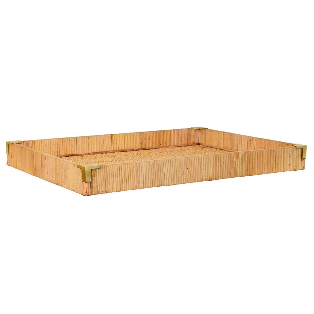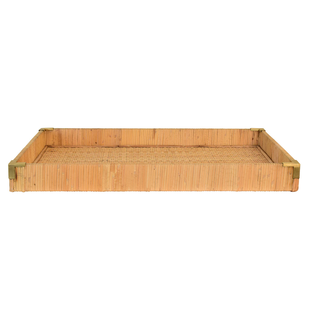 • Small rectangular natural rattan wrapped trays with brass corners